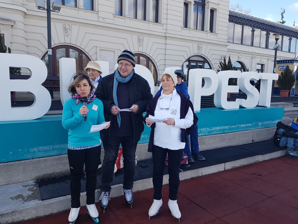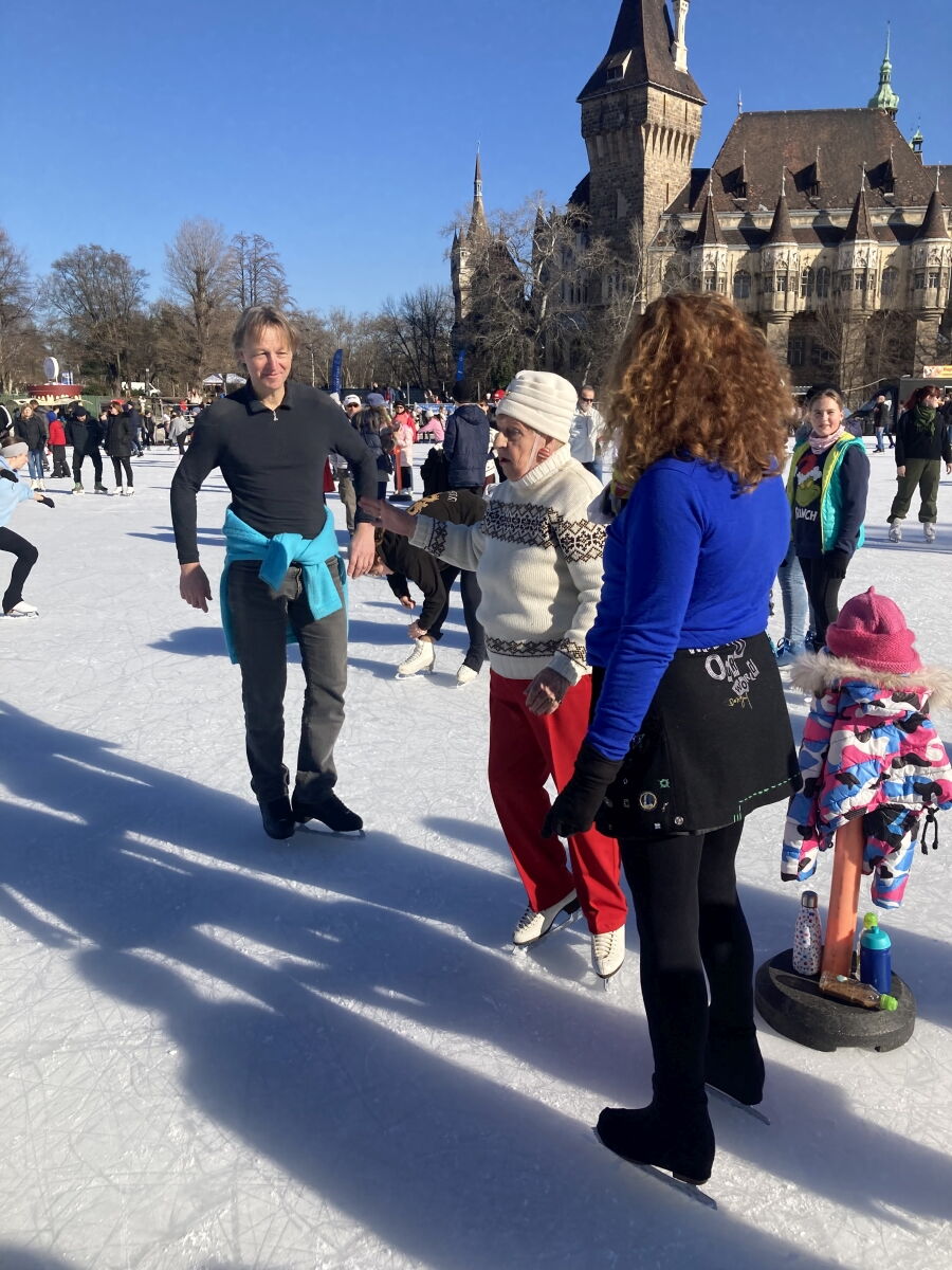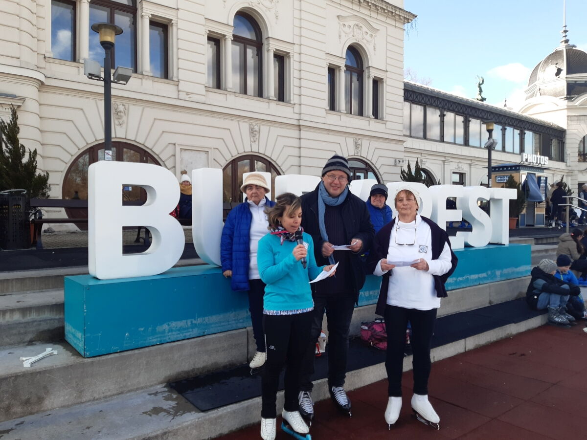 Dabei haben wir Kontakt mit der Leiterin des Eistanzkreises Stadtpark (Verein Varosligeti Jégtánckör) Frau Marta Antalne Lugosi aufgenommen. Dies war so nett und hat uns bei der Organisation des Tanzkreis auf dem Stadtpark Eislaufplatz (Városligeti Műjégpálya) geholfen.