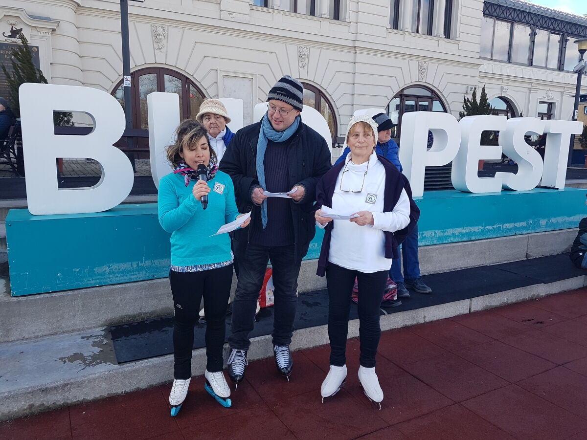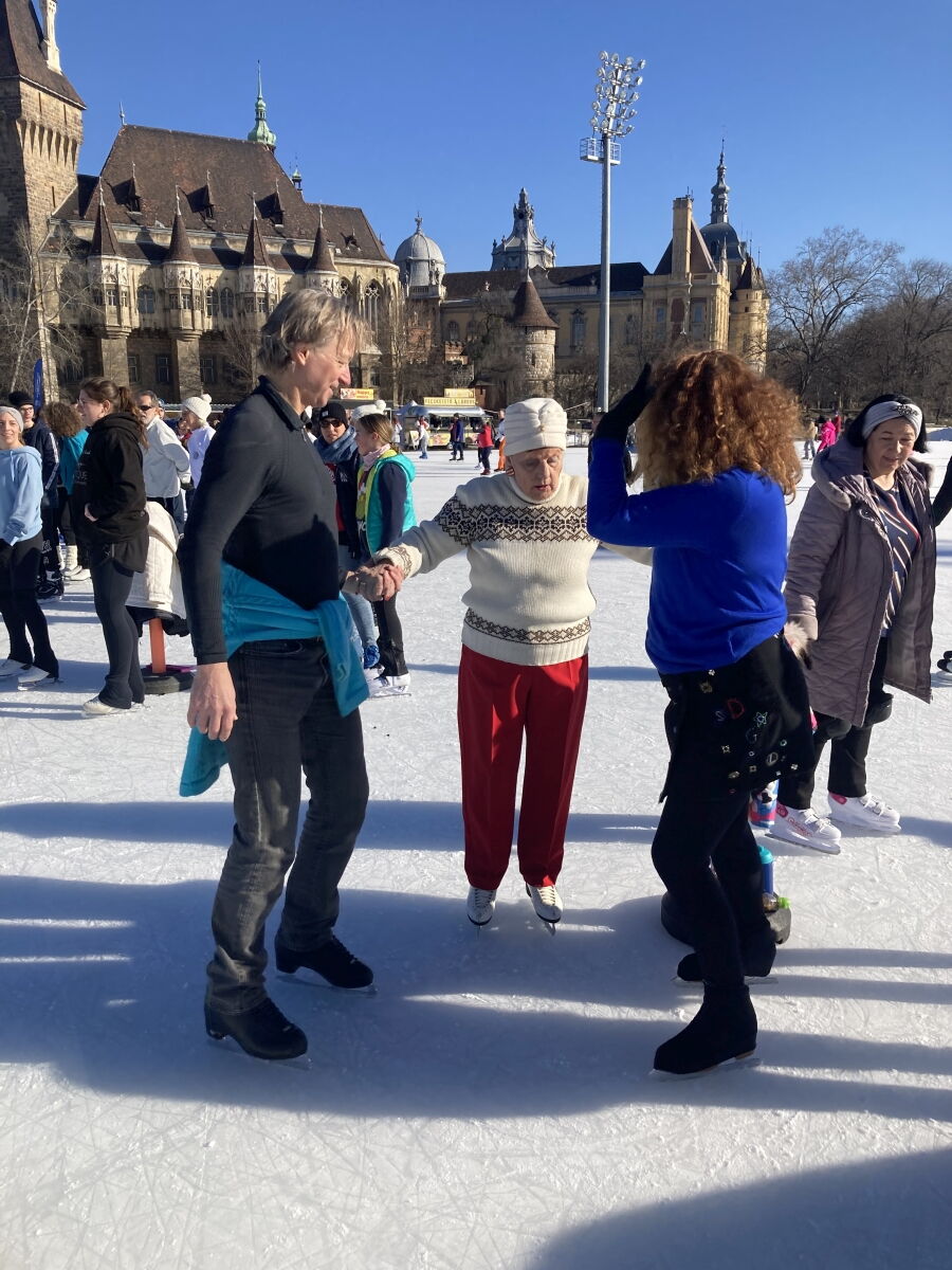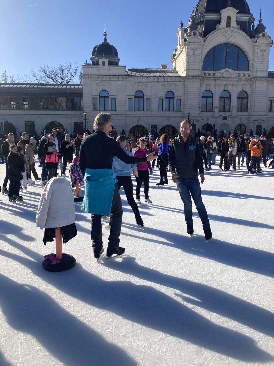 Dabei haben wir Kontakt mit der Leiterin des Eistanzkreises Stadtpark (Verein Varosligeti Jégtánckör) Frau Marta Antalne Lugosi aufgenommen. Dies war so nett und hat uns bei der Organisation des Tanzkreis auf dem Stadtpark Eislaufplatz (Városligeti Műjégpálya) geholfen.