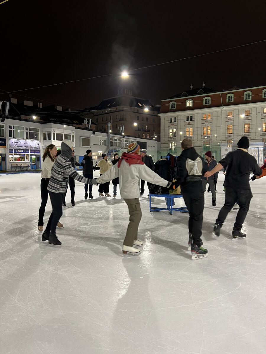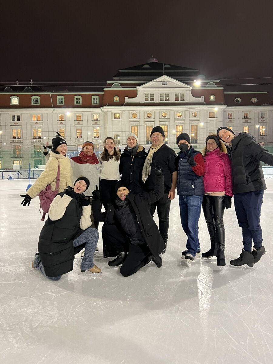 Drei Damen und drei Herren von Holiday On Ice haben uns am Mittwoch Abend am Wiener Eislaufverein im Tanzkreis besucht. Wir haben gleich alle unsere Tänze mit ihnen getanzt - auch Kette, Knopf und Kreiswalzer. War für alle ein Vergnügen!