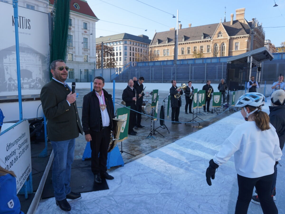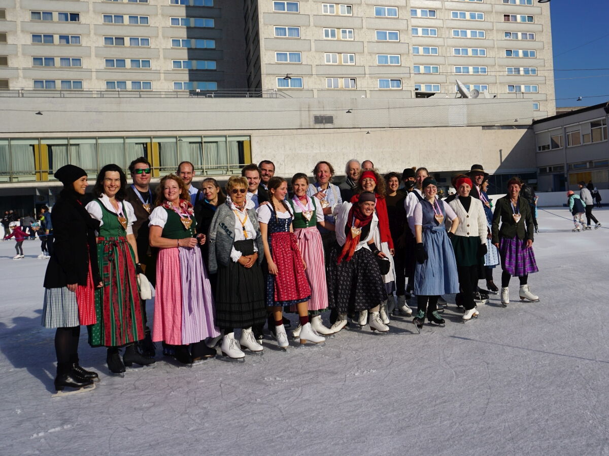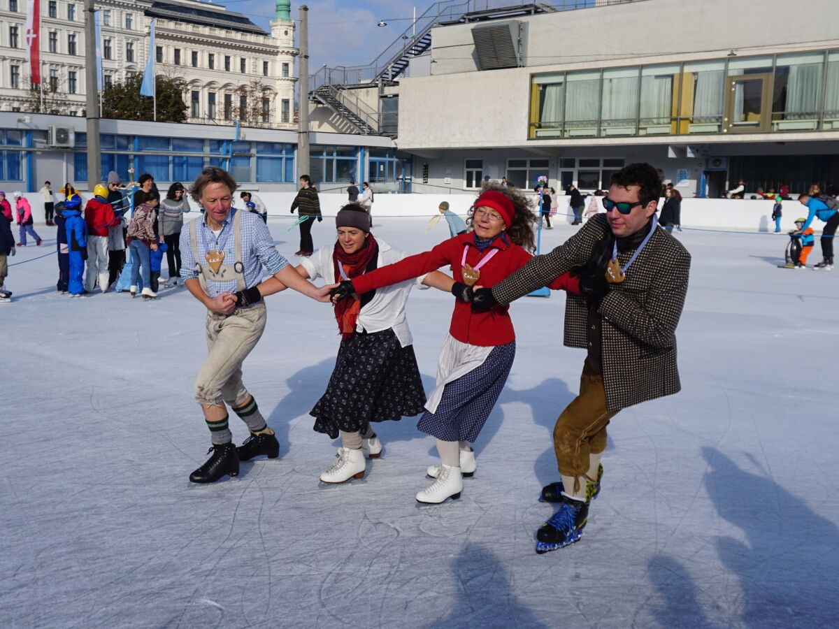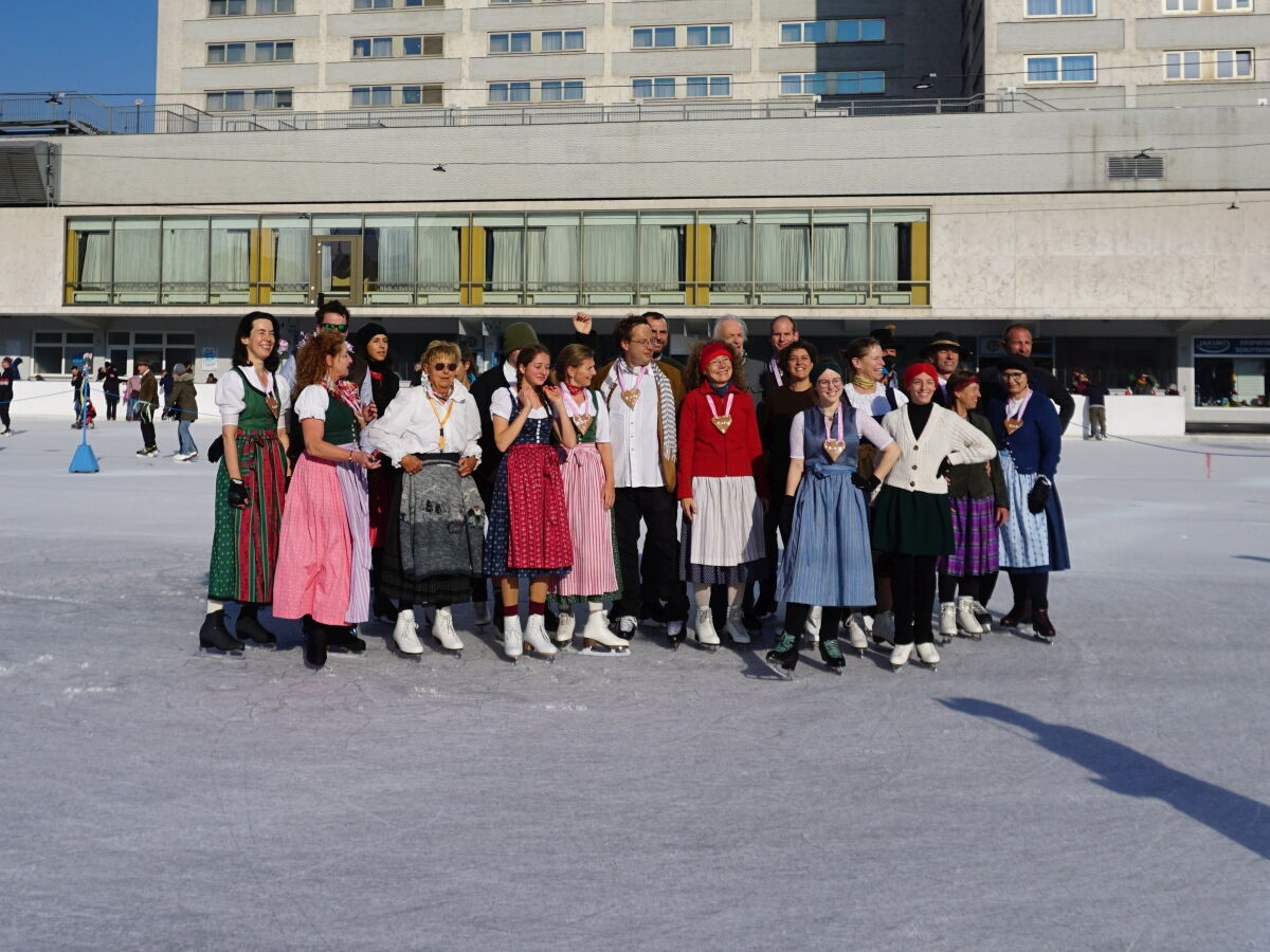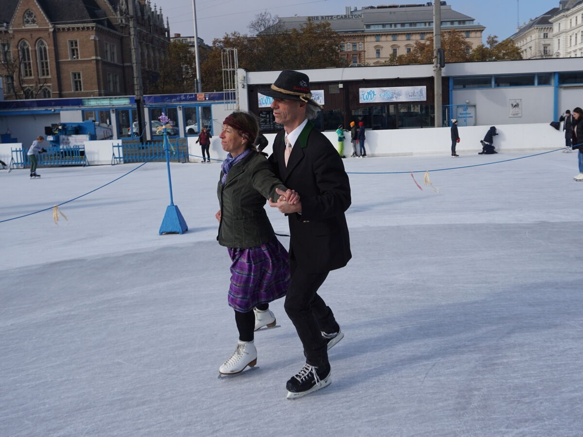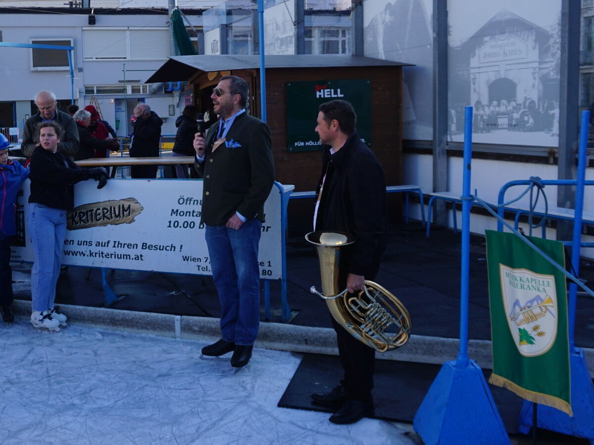 Wir danken dem Wiener Eislauf-Verein für die Organisation der Musikkapelle - ganz besonders Christoff. Der Wunsch mit einer Blasmusik wie vor 100 Jahren zu spielen hatten Gustav und ich schon anläßlich der Aufnahme des Rundtanzens in die Liste des Immateriellen Kulturerbes der UNESCO.