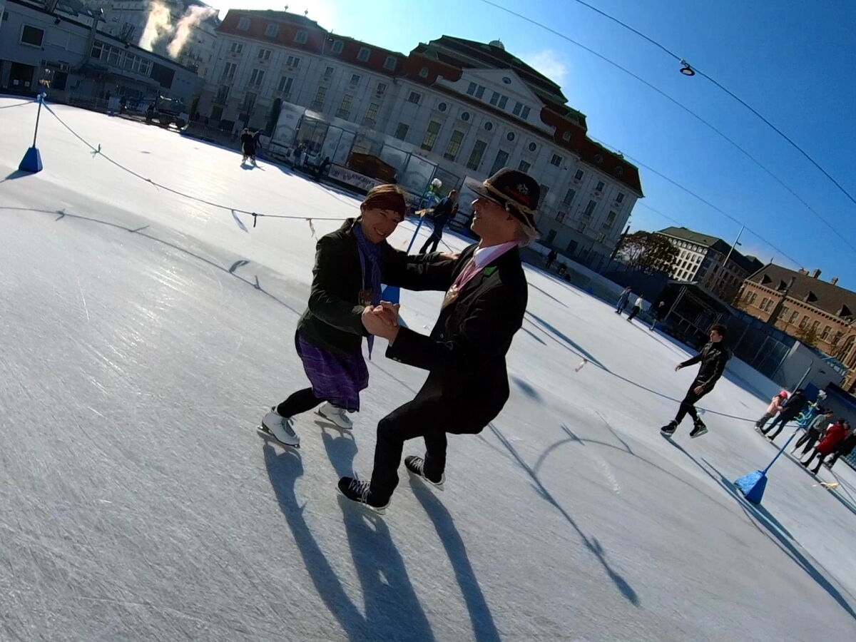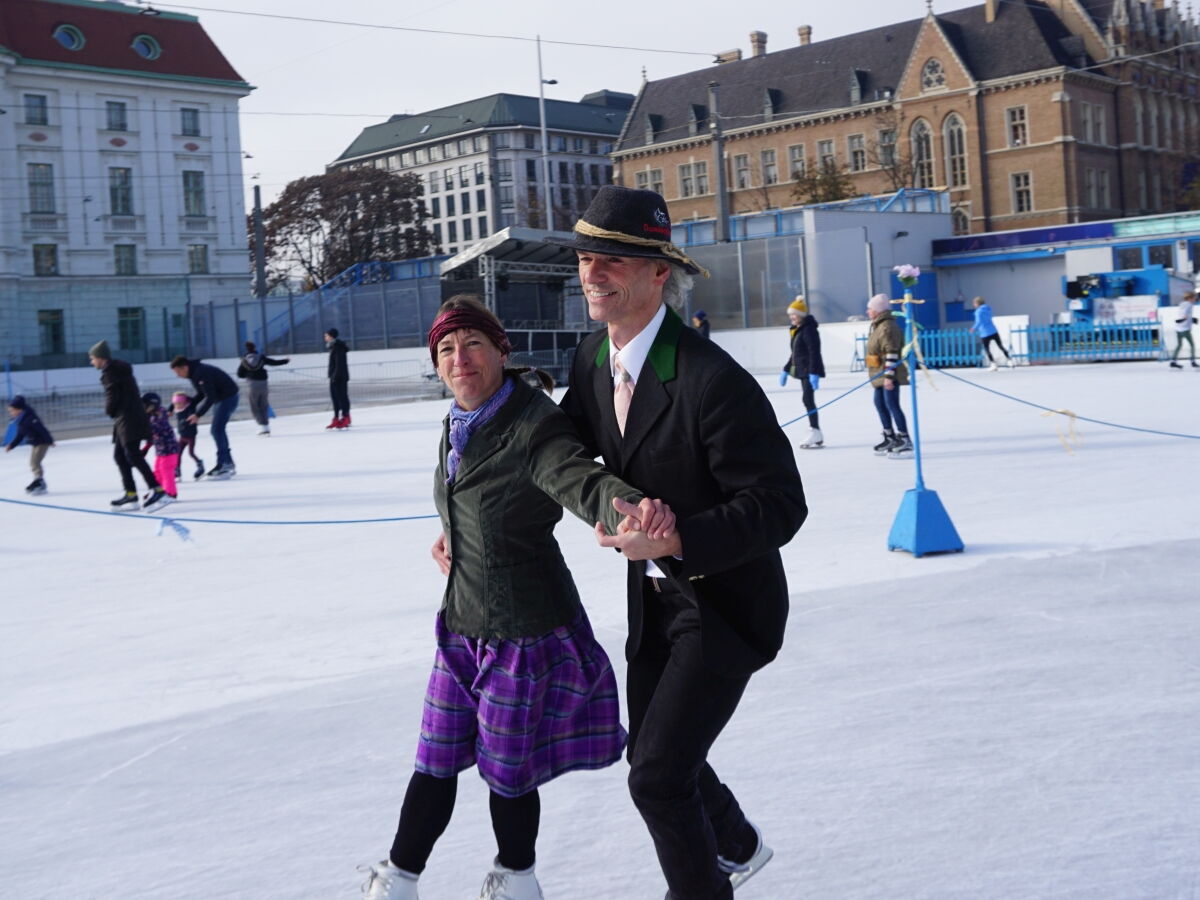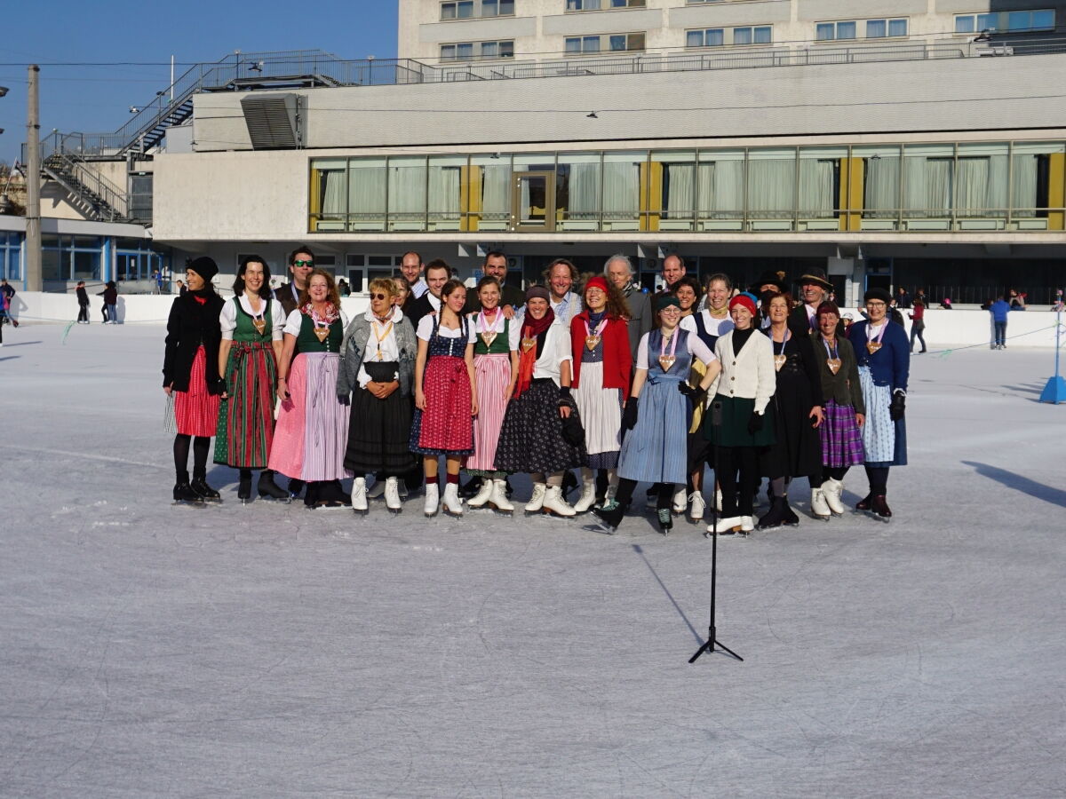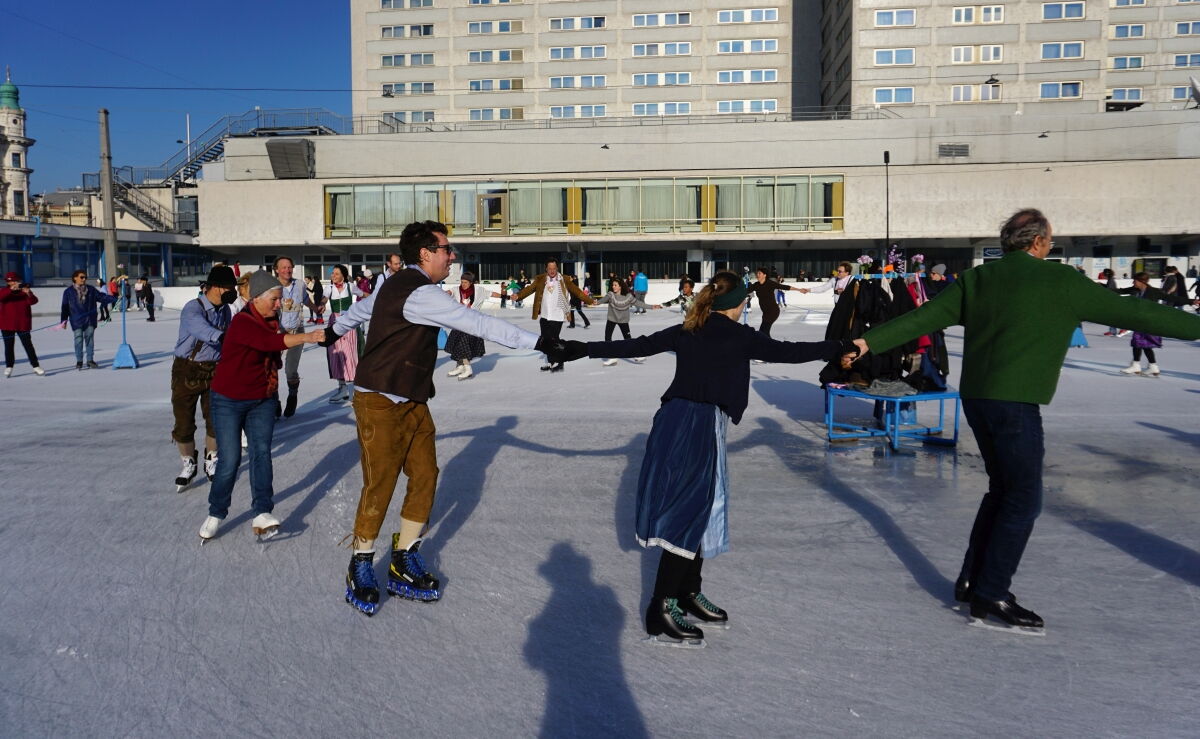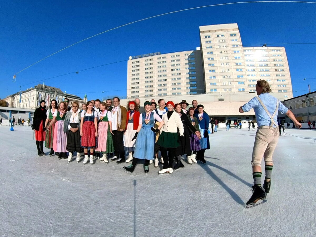 Wir danken dem Wiener Eislauf-Verein für die Organisation der Musikkapelle - ganz besonders Christoff. Der Wunsch mit einer Blasmusik wie vor 100 Jahren zu spielen hatten Gustav und ich schon anläßlich der Aufnahme des Rundtanzens in die Liste des Immateriellen Kulturerbes der UNESCO.