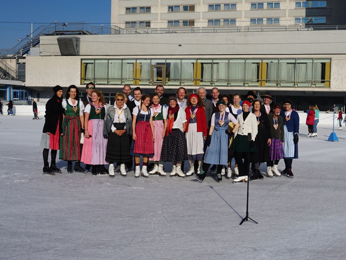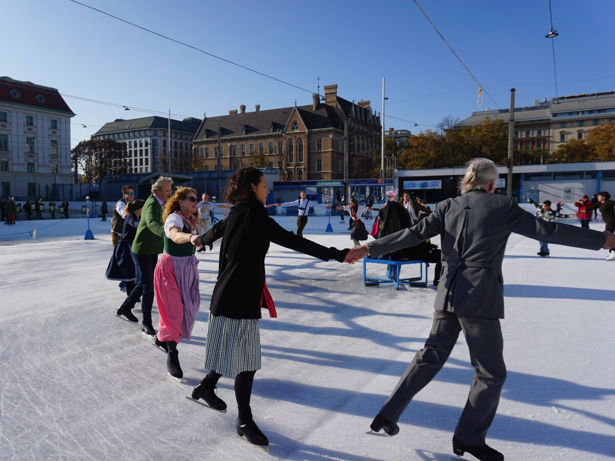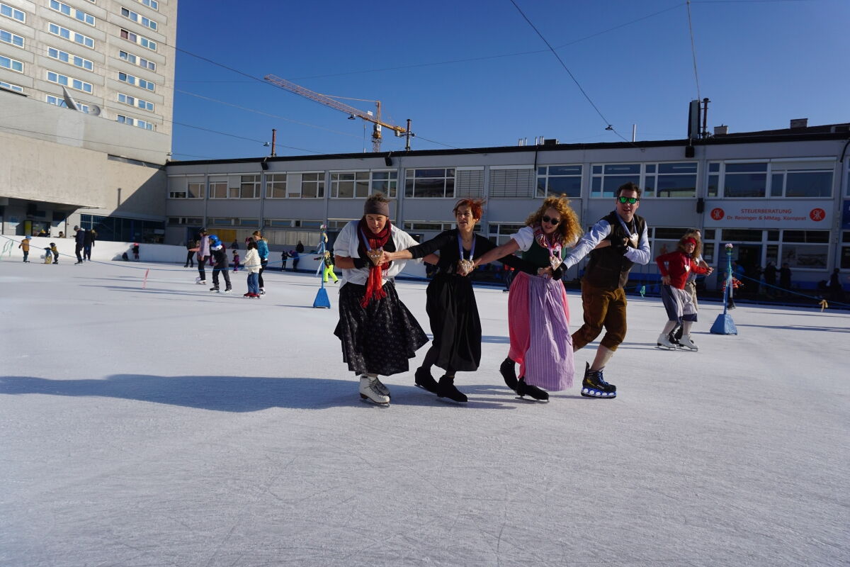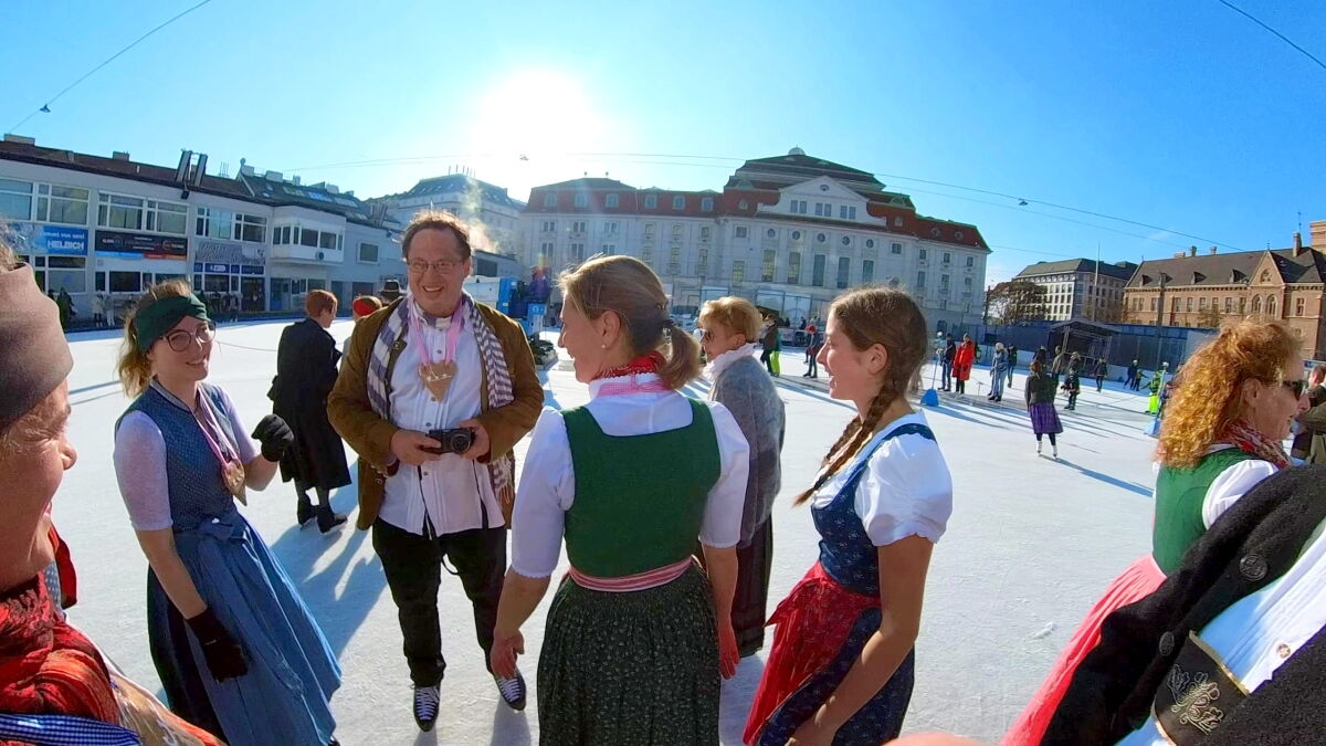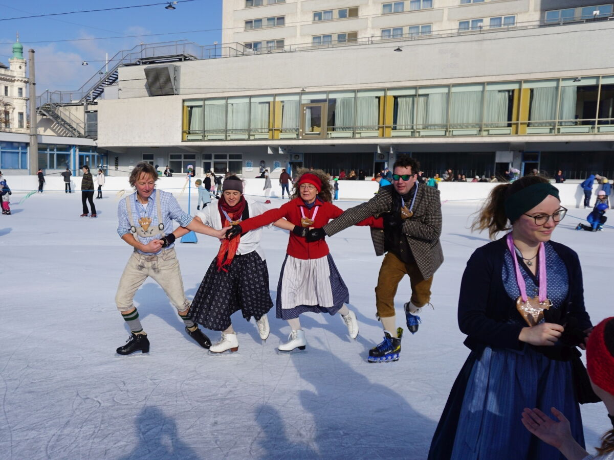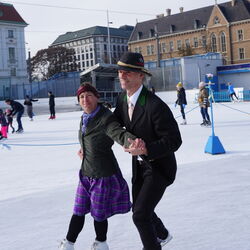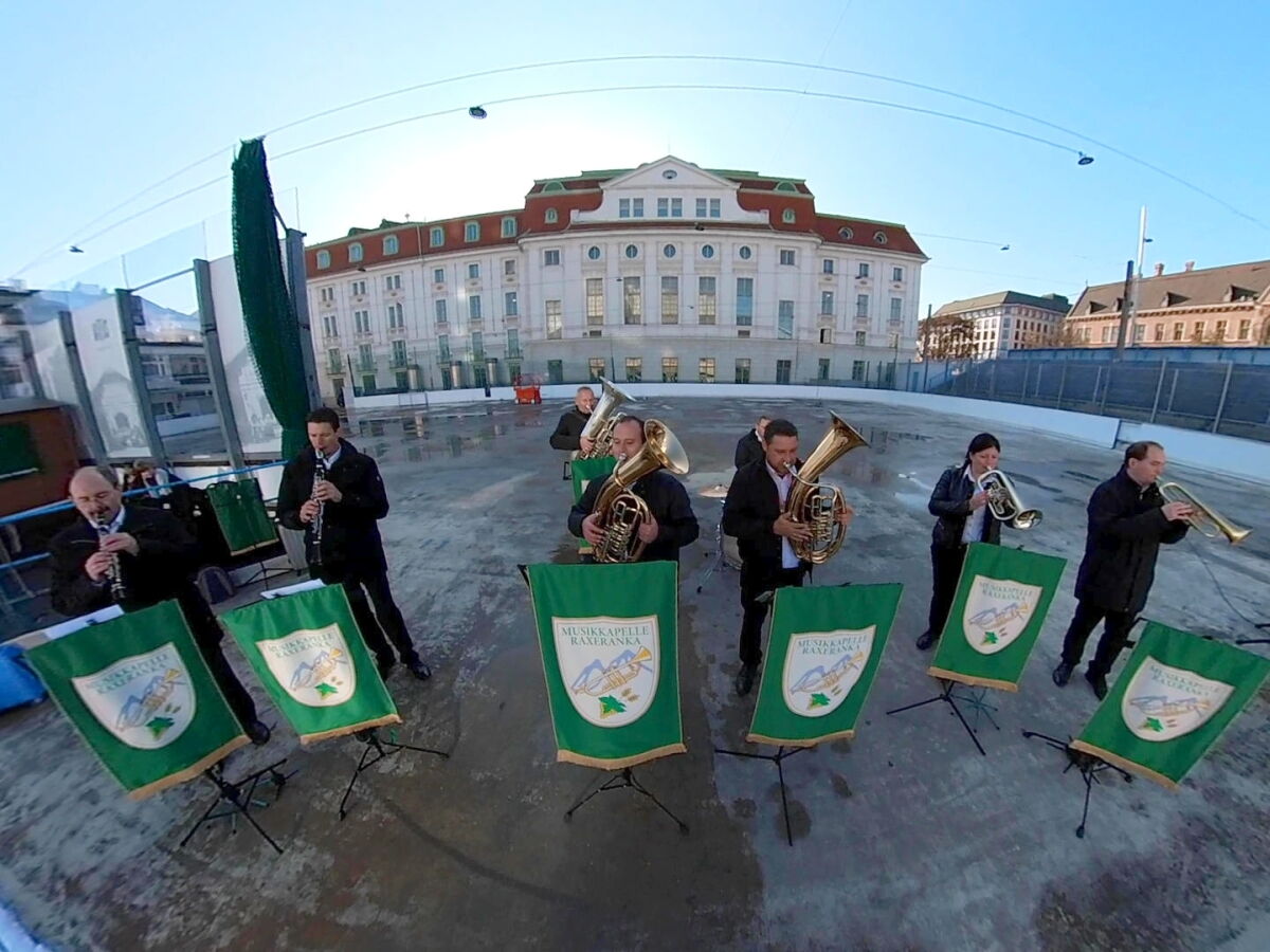 Wir danken dem Wiener Eislauf-Verein für die Organisation der Musikkapelle - ganz besonders Christoff. Der Wunsch mit einer Blasmusik wie vor 100 Jahren zu spielen hatten Gustav und ich schon anläßlich der Aufnahme des Rundtanzens in die Liste des Immateriellen Kulturerbes der UNESCO.