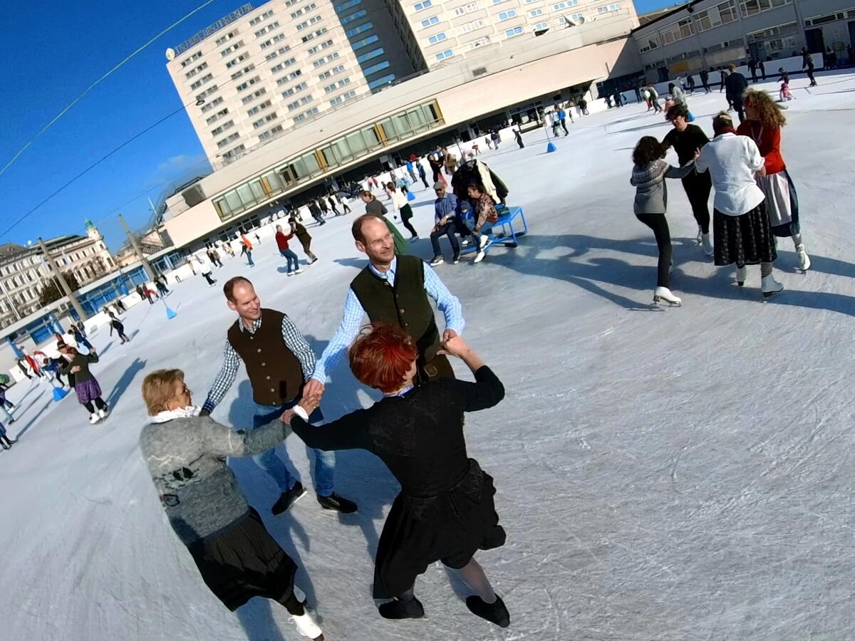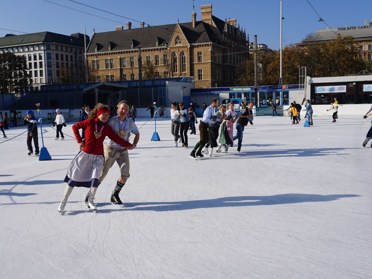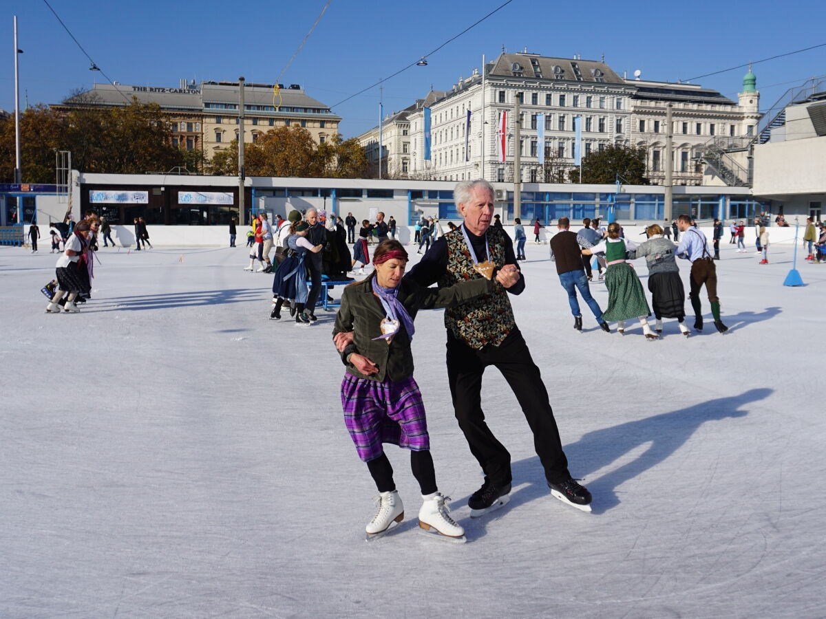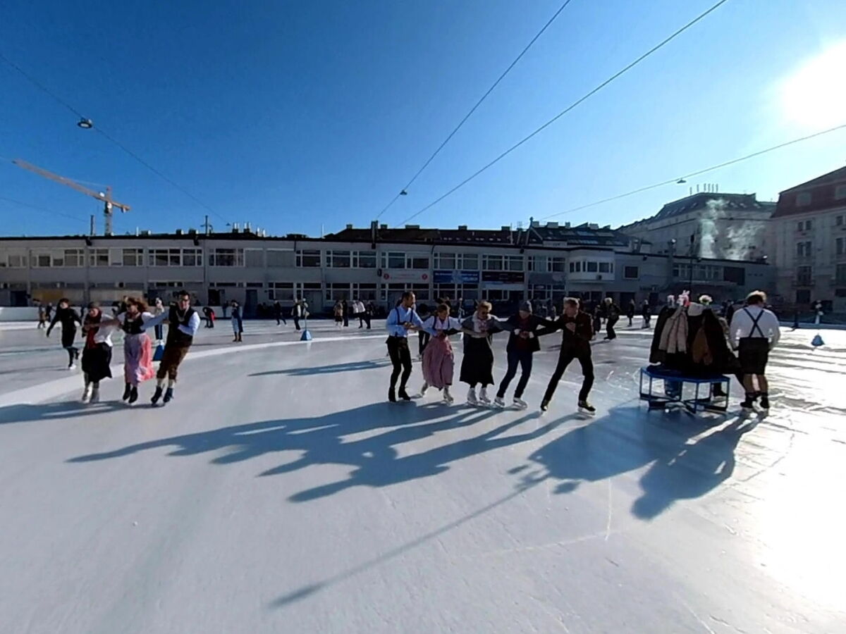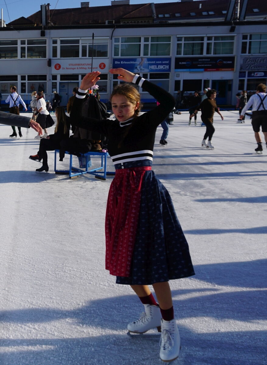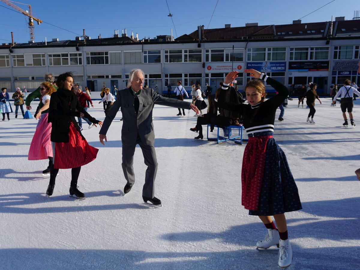 Wir danken dem Wiener Eislauf-Verein für die Organisation der Musikkapelle - ganz besonders Christoff. Der Wunsch mit einer Blasmusik wie vor 100 Jahren zu spielen hatten Gustav und ich schon anläßlich der Aufnahme des Rundtanzens in die Liste des Immateriellen Kulturerbes der UNESCO.