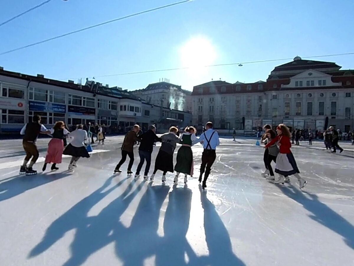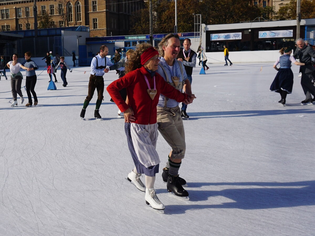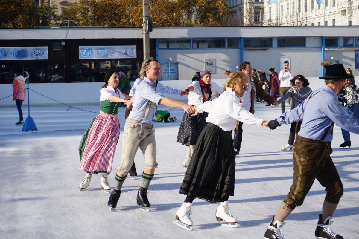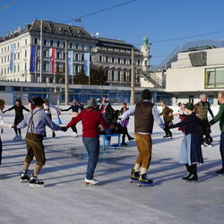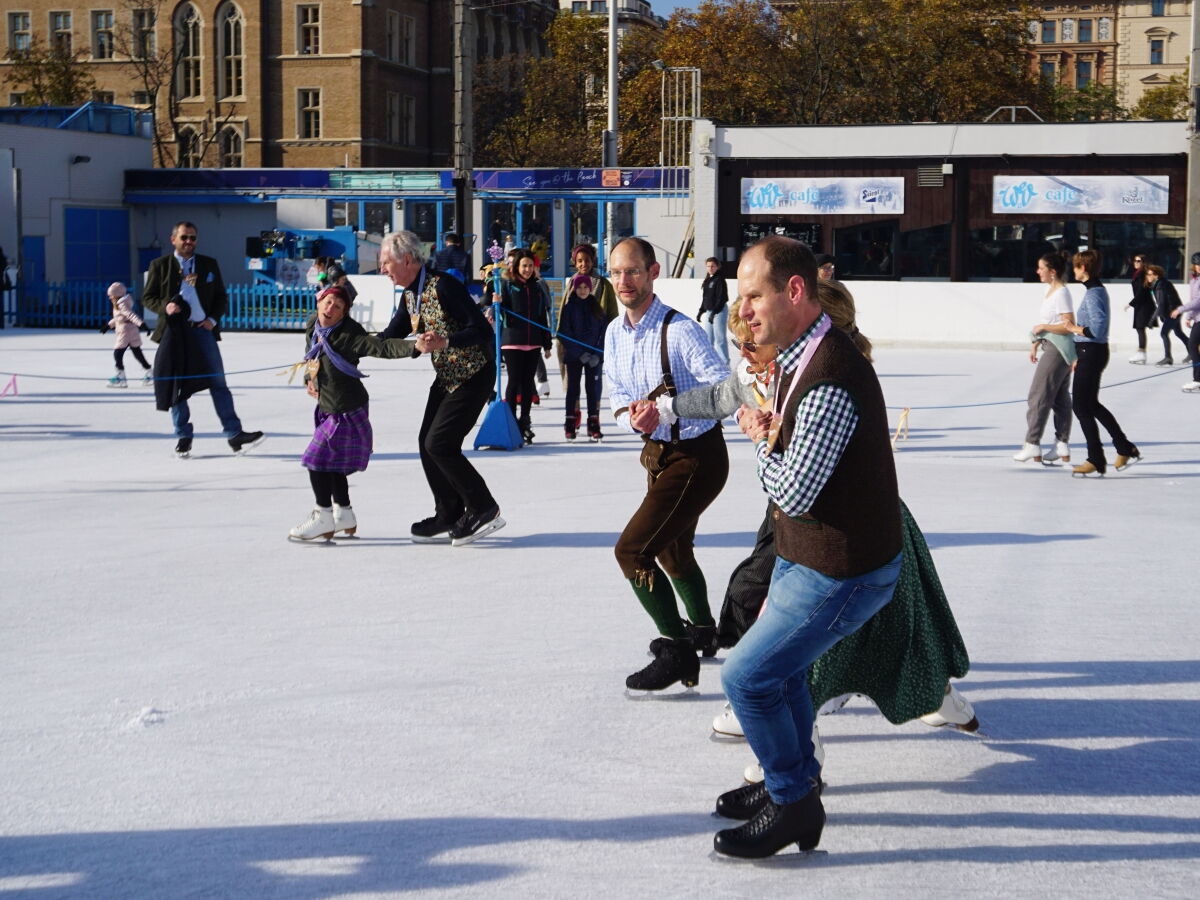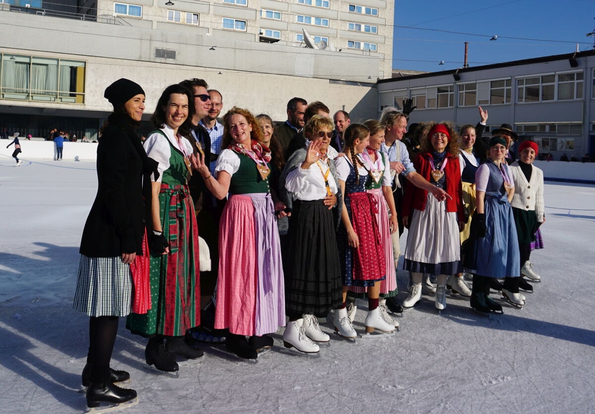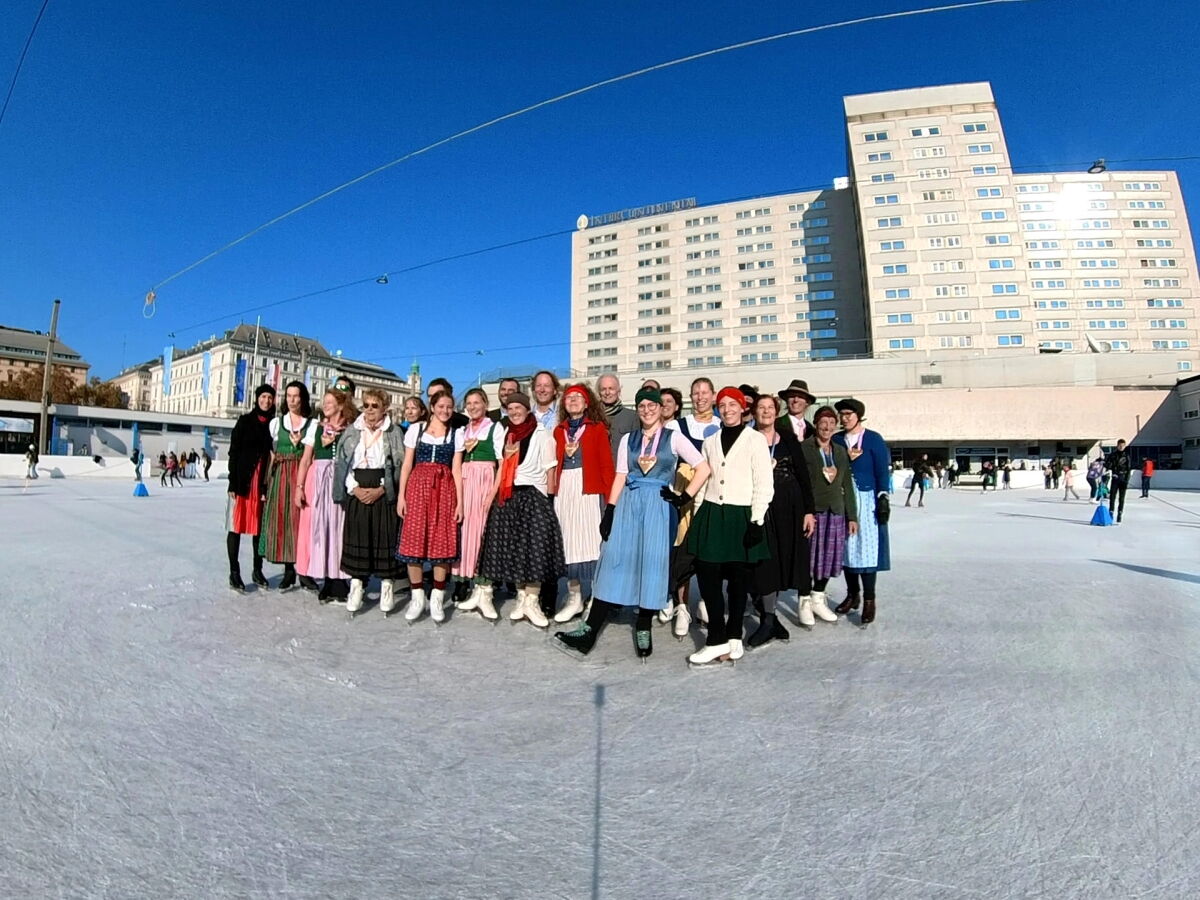 Wir danken dem Wiener Eislauf-Verein für die Organisation der Musikkapelle - ganz besonders Christoff. Der Wunsch mit einer Blasmusik wie vor 100 Jahren zu spielen hatten Gustav und ich schon anläßlich der Aufnahme des Rundtanzens in die Liste des Immateriellen Kulturerbes der UNESCO.