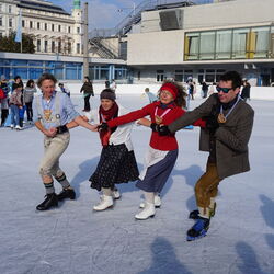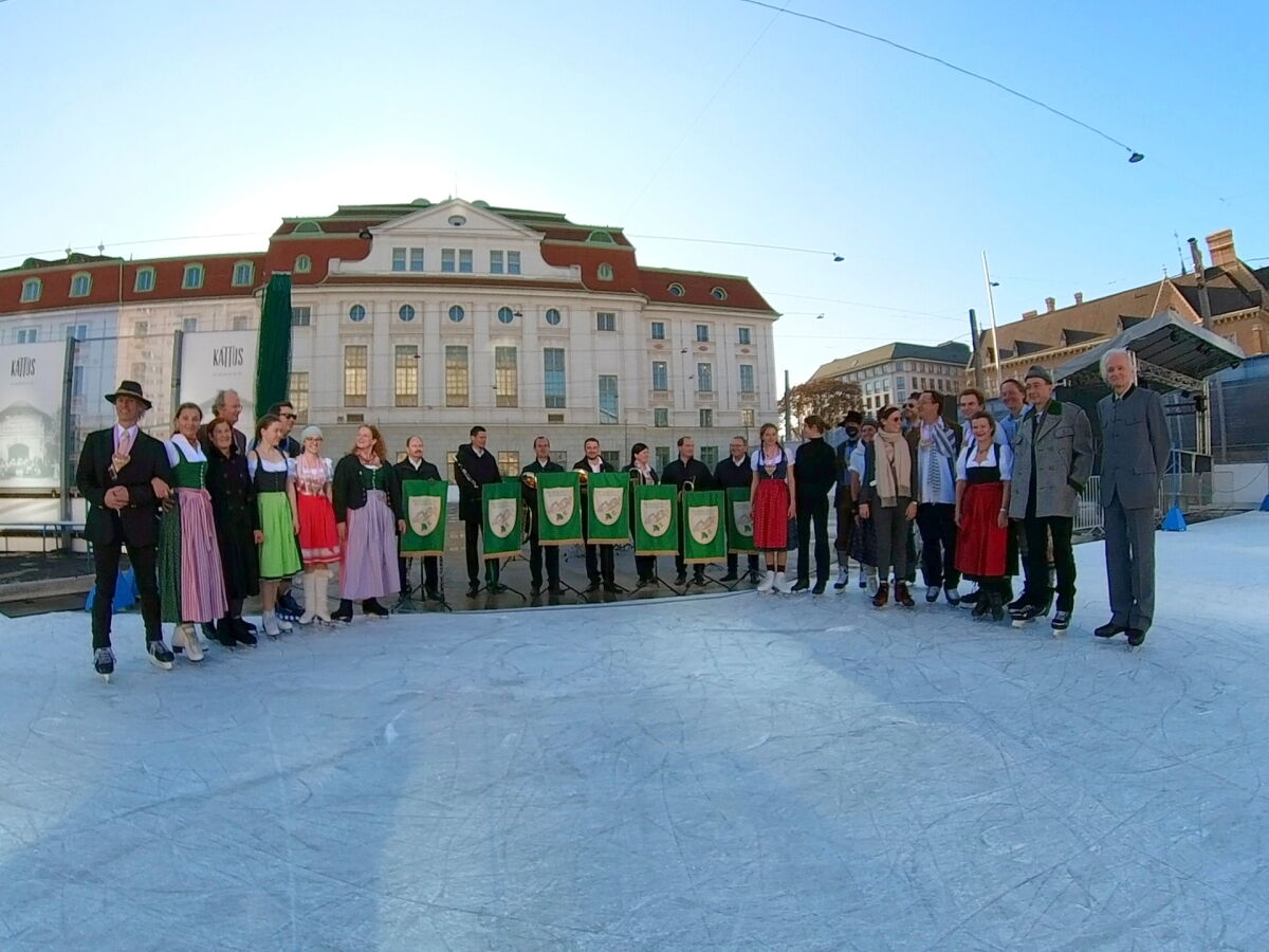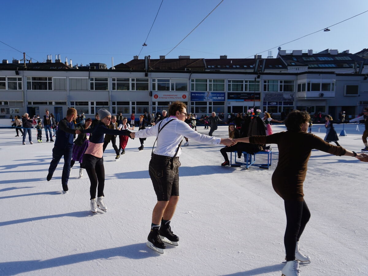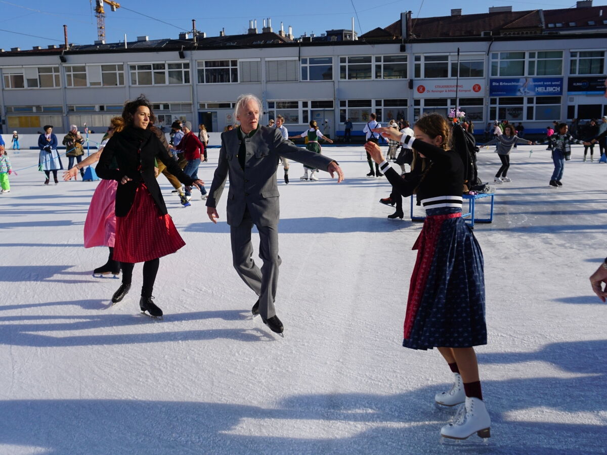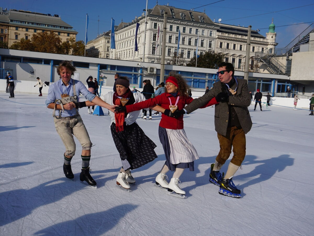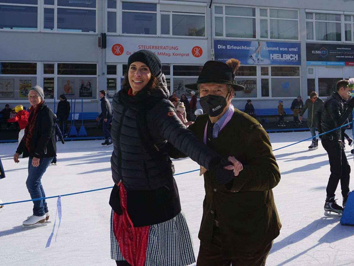 Wir danken dem Wiener Eislauf-Verein für die Organisation der Musikkapelle - ganz besonders Christoff. Der Wunsch mit einer Blasmusik wie vor 100 Jahren zu spielen hatten Gustav und ich schon anläßlich der Aufnahme des Rundtanzens in die Liste des Immateriellen Kulturerbes der UNESCO.
