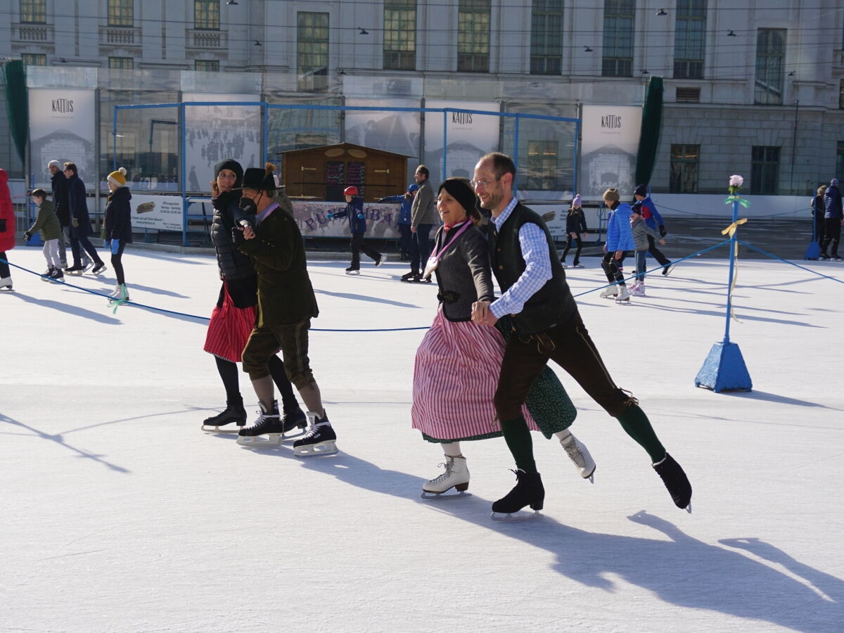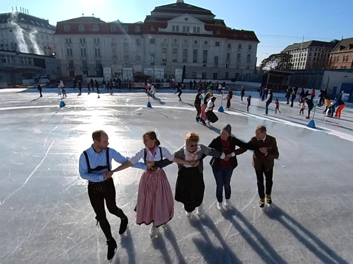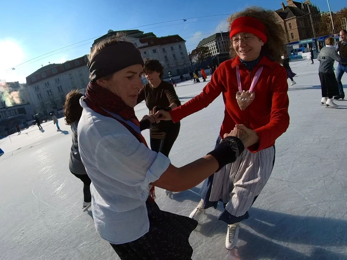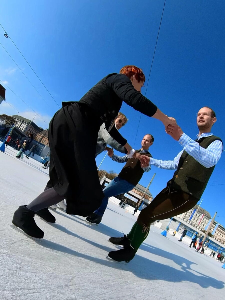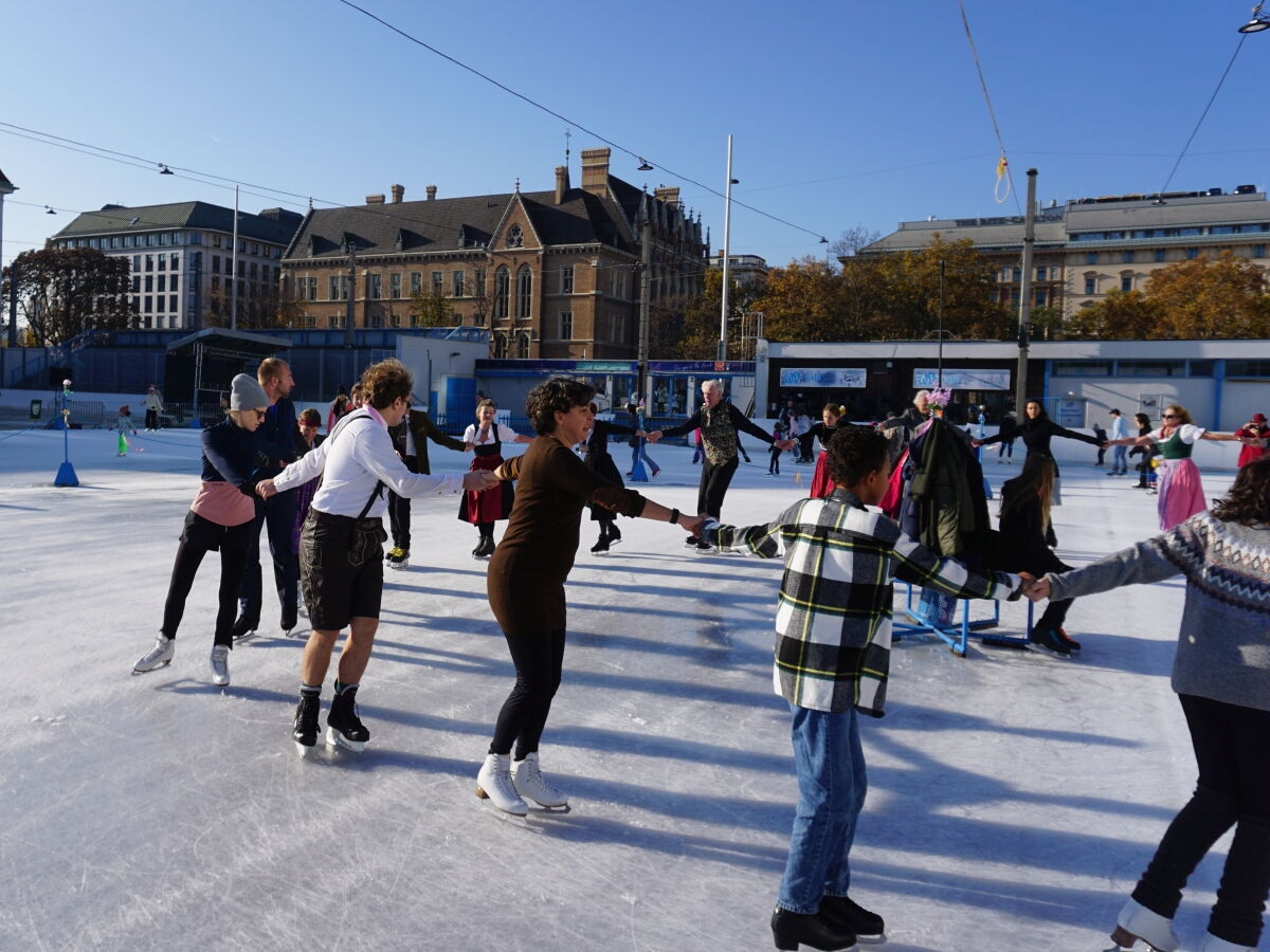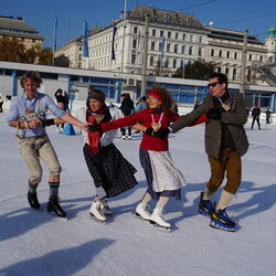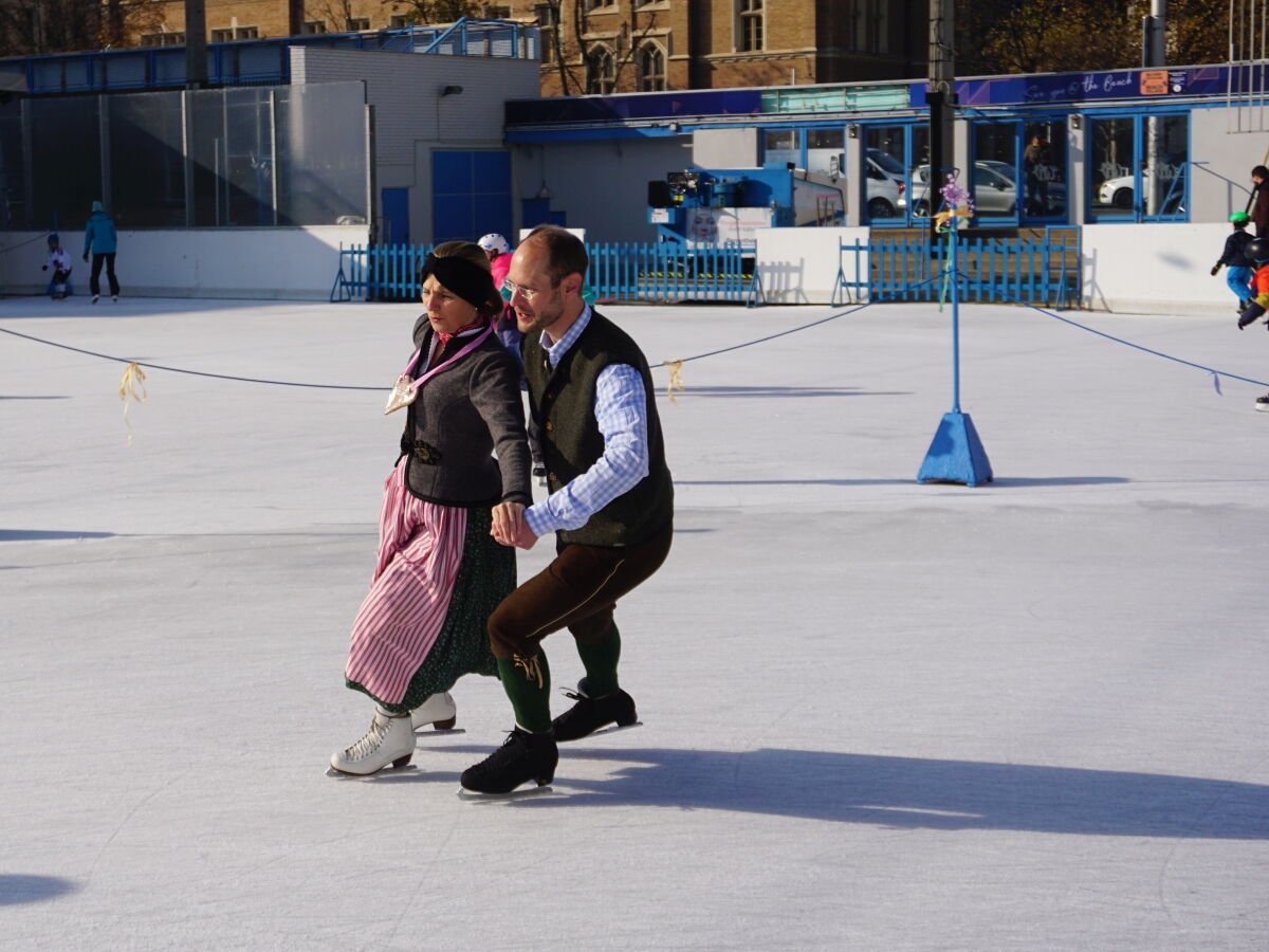 Wir danken dem Wiener Eislauf-Verein für die Organisation der Musikkapelle - ganz besonders Christoff. Der Wunsch mit einer Blasmusik wie vor 100 Jahren zu spielen hatten Gustav und ich schon anläßlich der Aufnahme des Rundtanzens in die Liste des Immateriellen Kulturerbes der UNESCO.