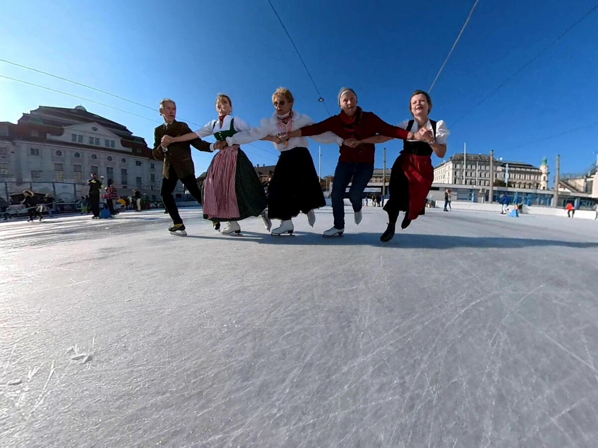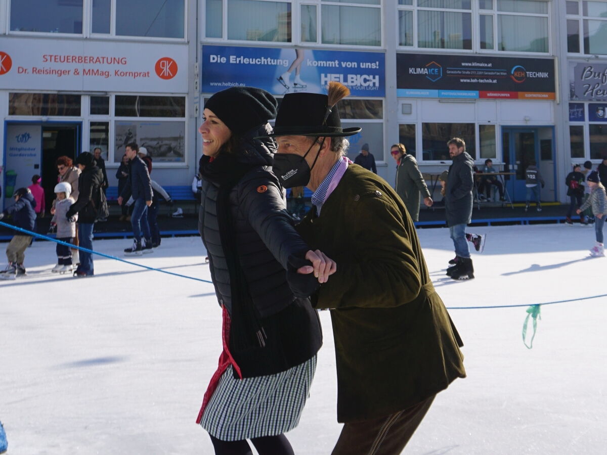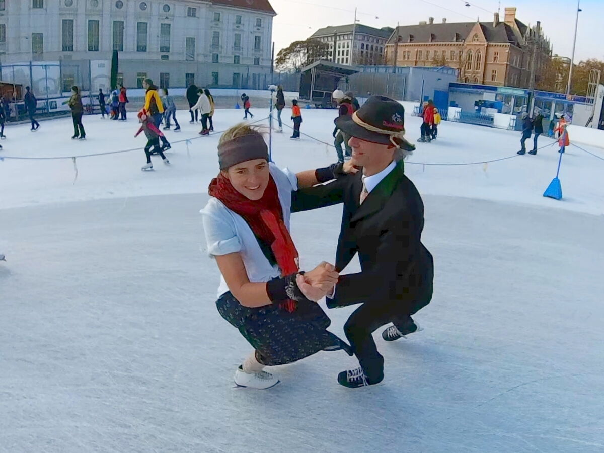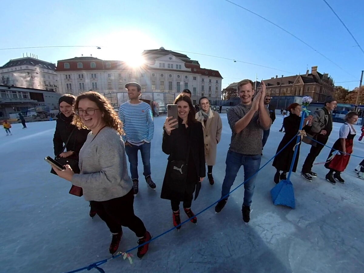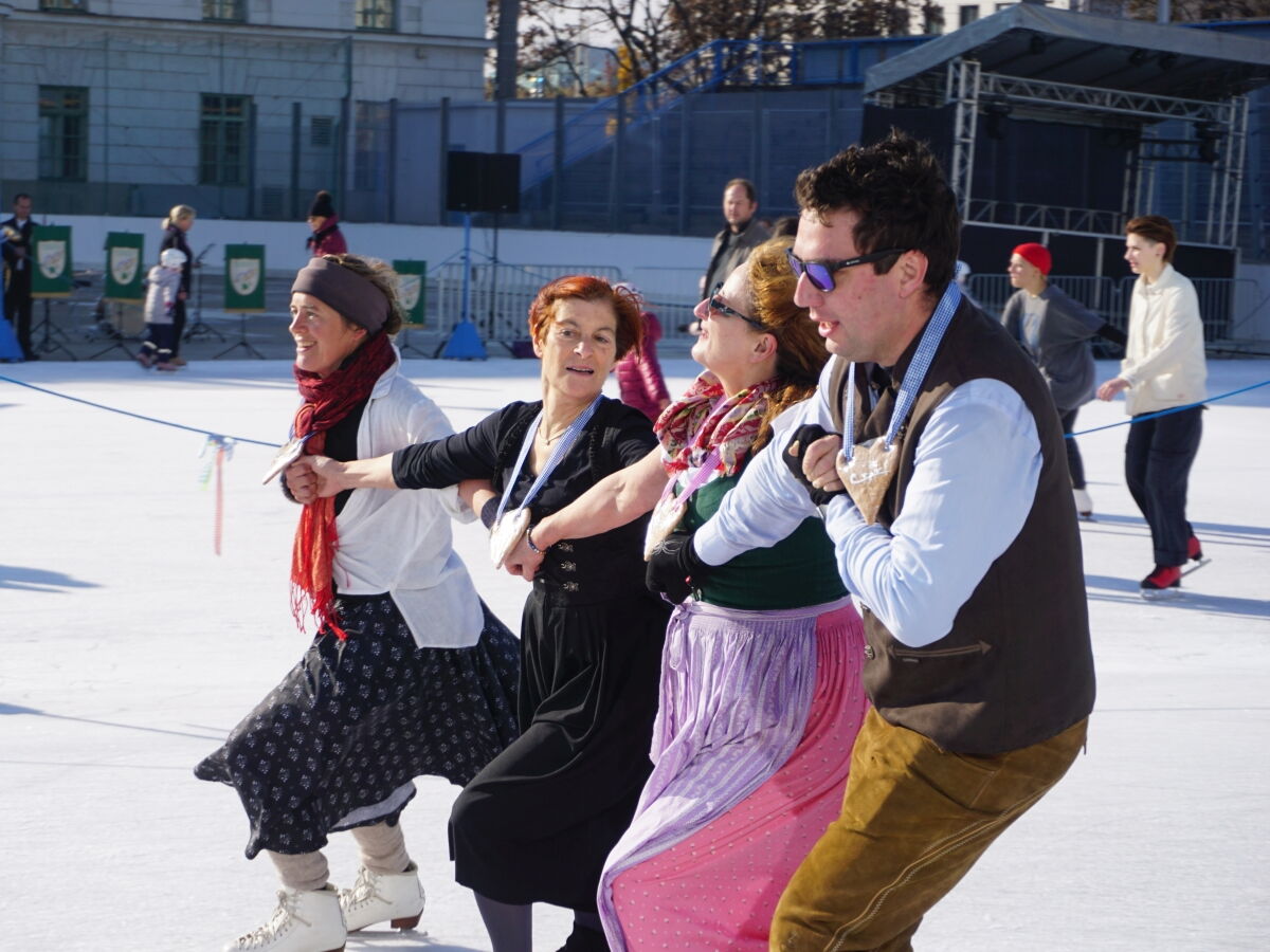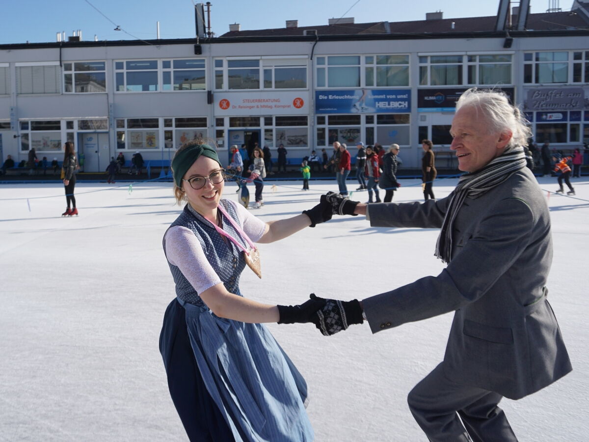 Wir danken dem Wiener Eislauf-Verein für die Organisation der Musikkapelle - ganz besonders Christoff. Der Wunsch mit einer Blasmusik wie vor 100 Jahren zu spielen hatten Gustav und ich schon anläßlich der Aufnahme des Rundtanzens in die Liste des Immateriellen Kulturerbes der UNESCO.