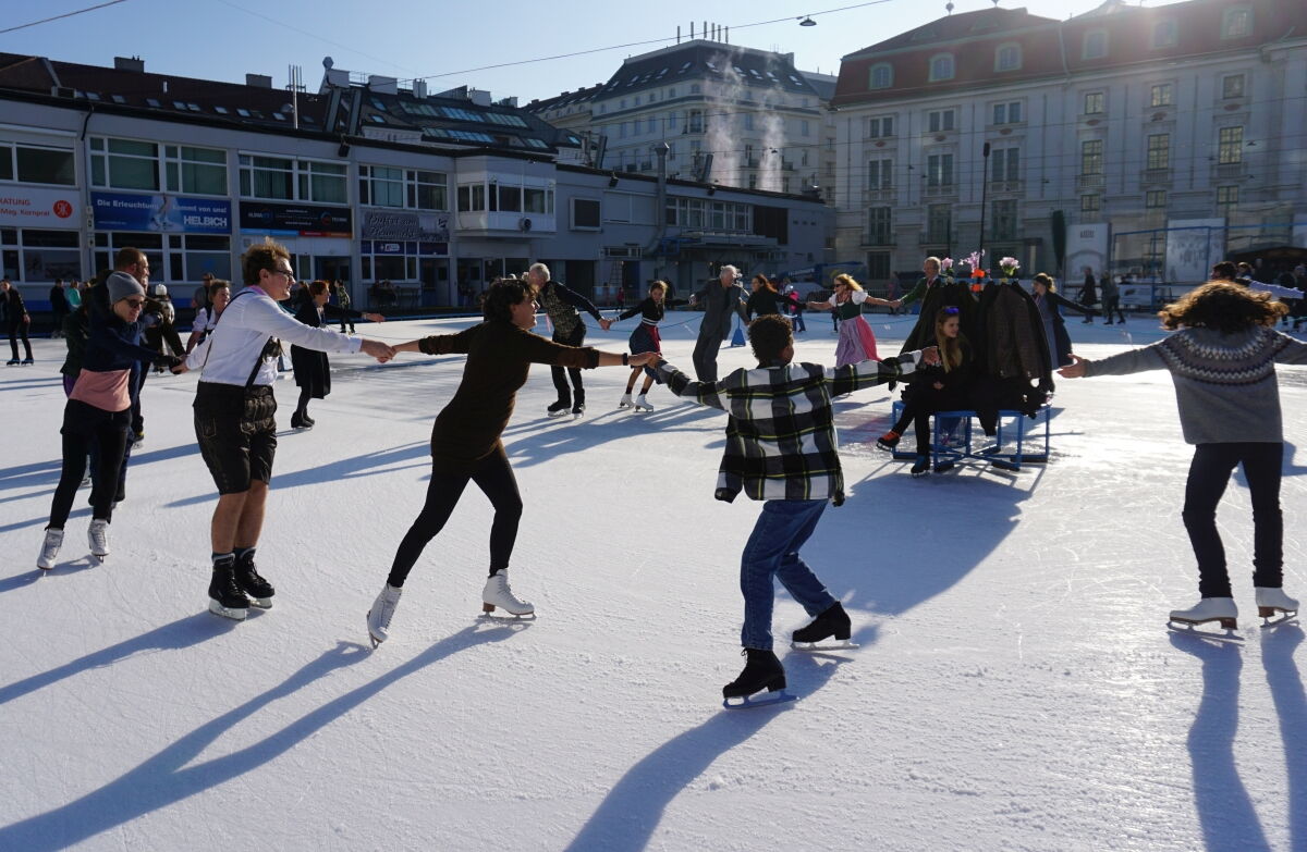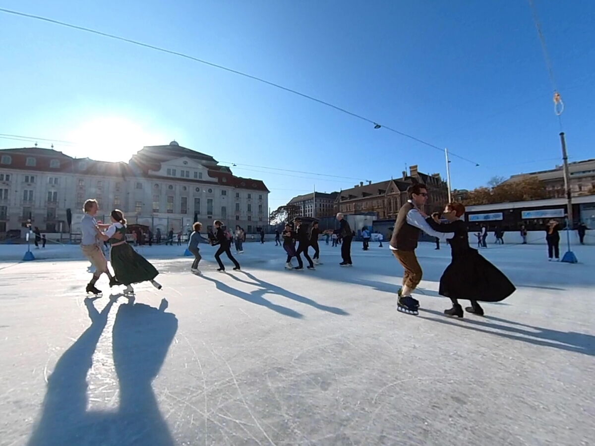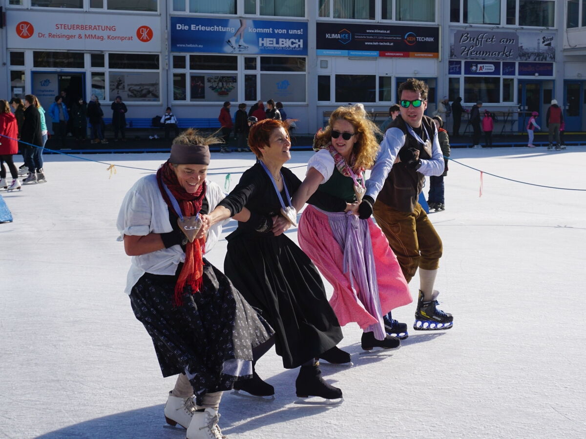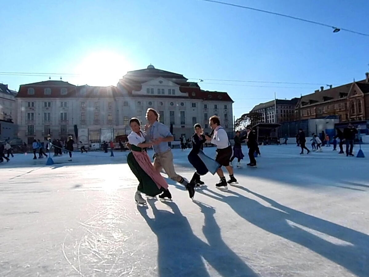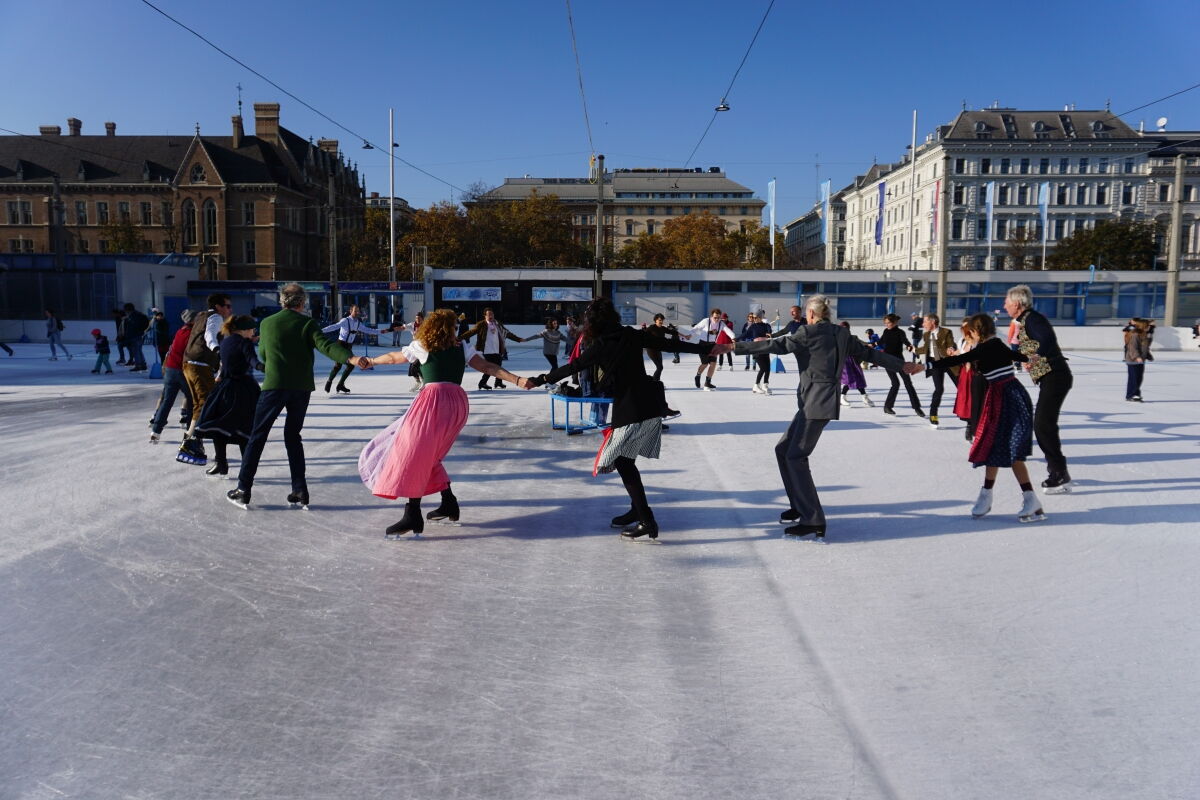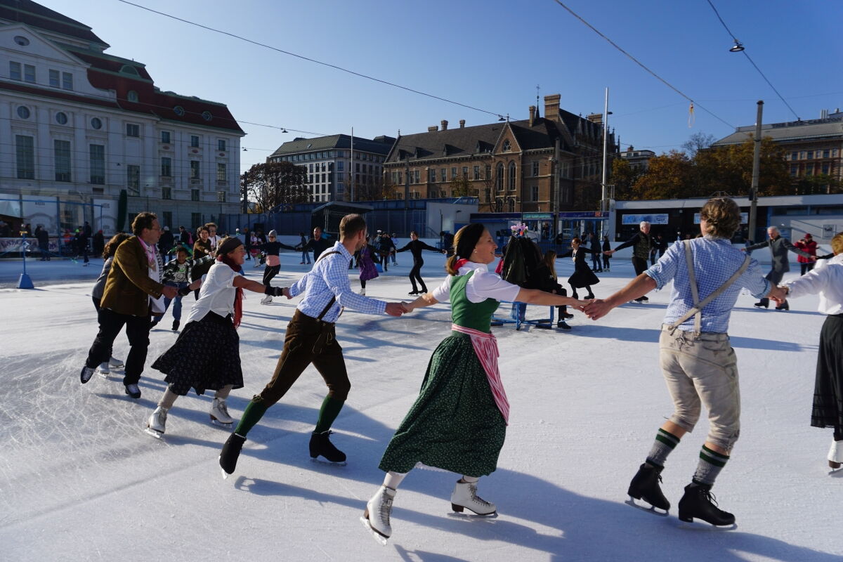 Wir danken dem Wiener Eislauf-Verein für die Organisation der Musikkapelle - ganz besonders Christoff. Der Wunsch mit einer Blasmusik wie vor 100 Jahren zu spielen hatten Gustav und ich schon anläßlich der Aufnahme des Rundtanzens in die Liste des Immateriellen Kulturerbes der UNESCO.
