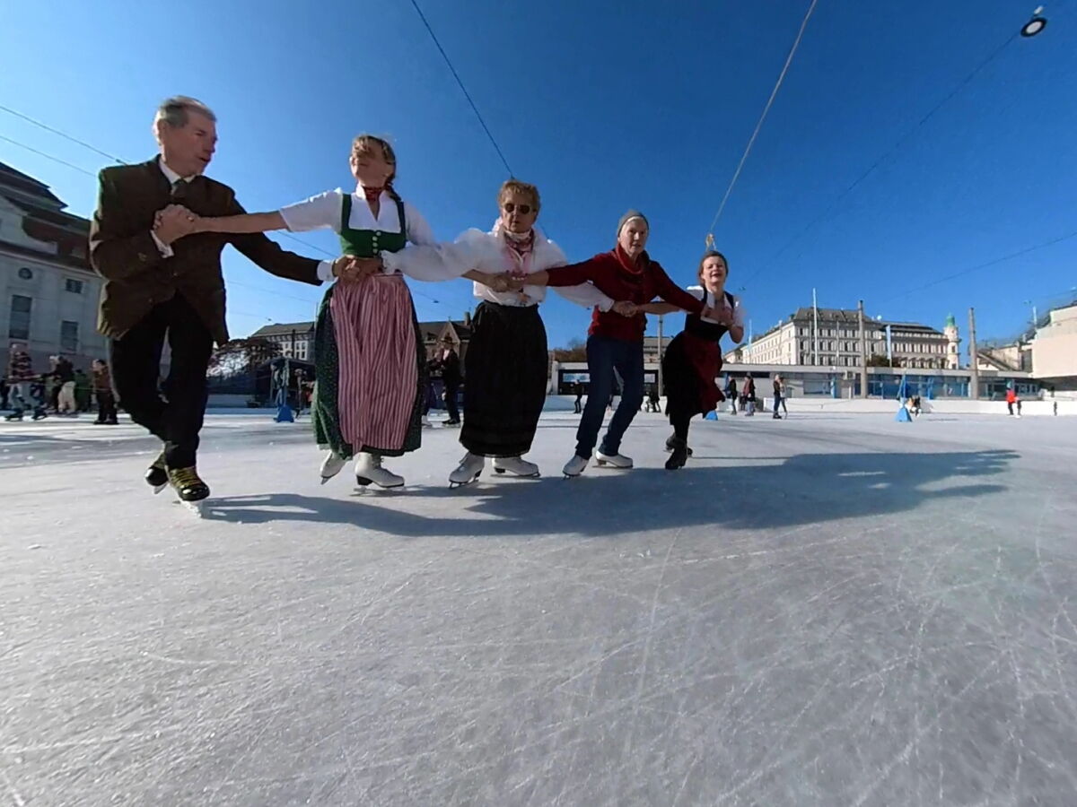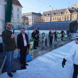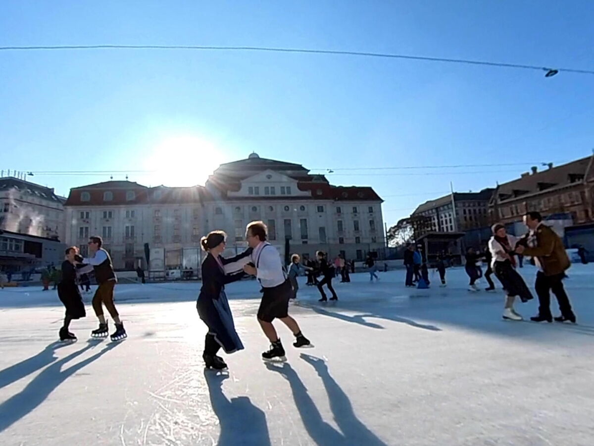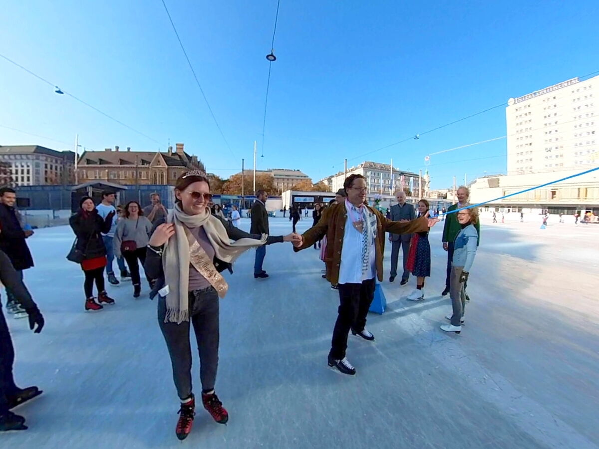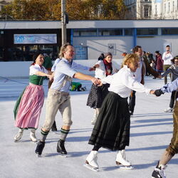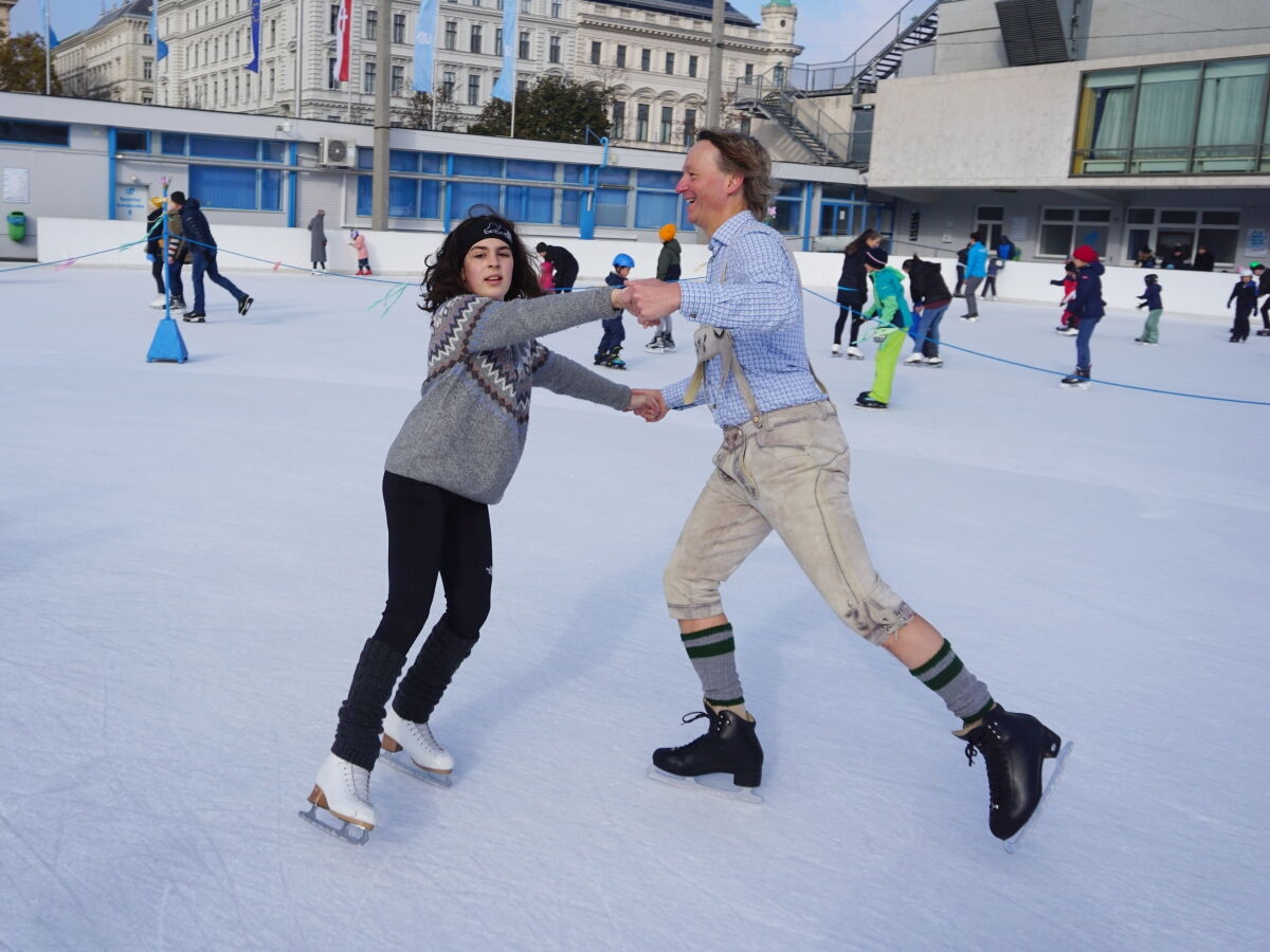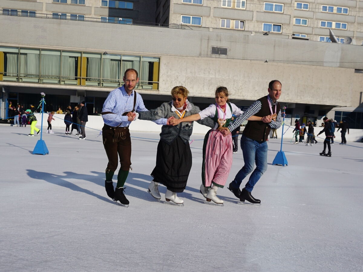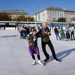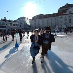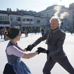 Wir danken dem Wiener Eislauf-Verein für die Organisation der Musikkapelle - ganz besonders Christoff. Der Wunsch mit einer Blasmusik wie vor 100 Jahren zu spielen hatten Gustav und ich schon anläßlich der Aufnahme des Rundtanzens in die Liste des Immateriellen Kulturerbes der UNESCO.