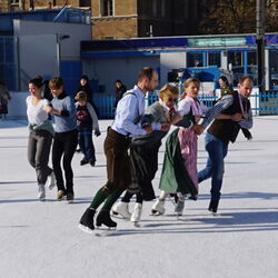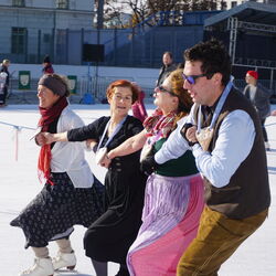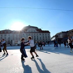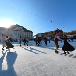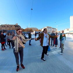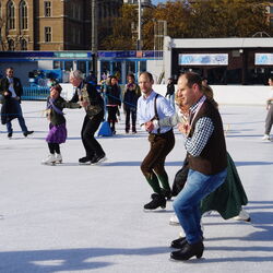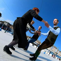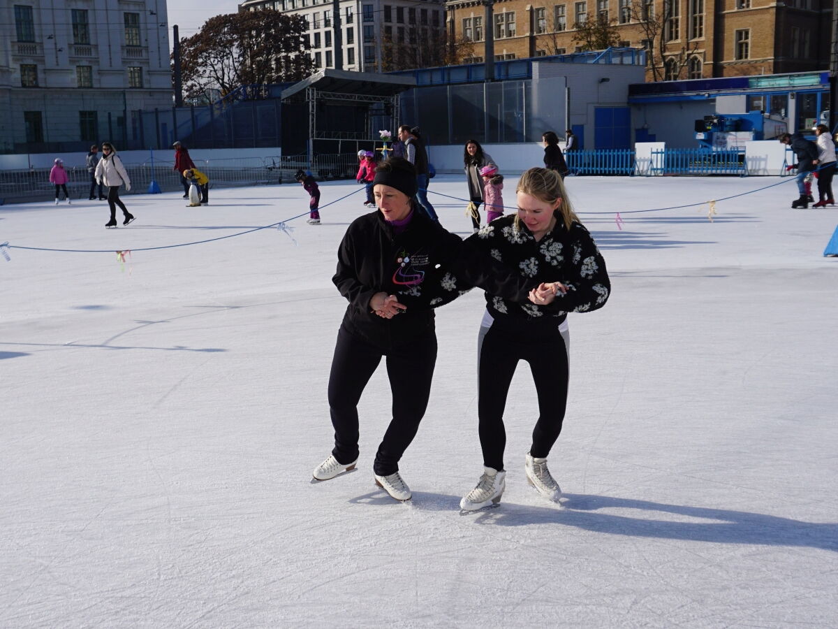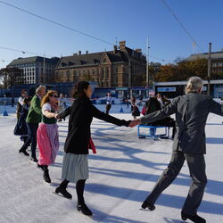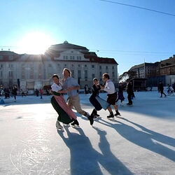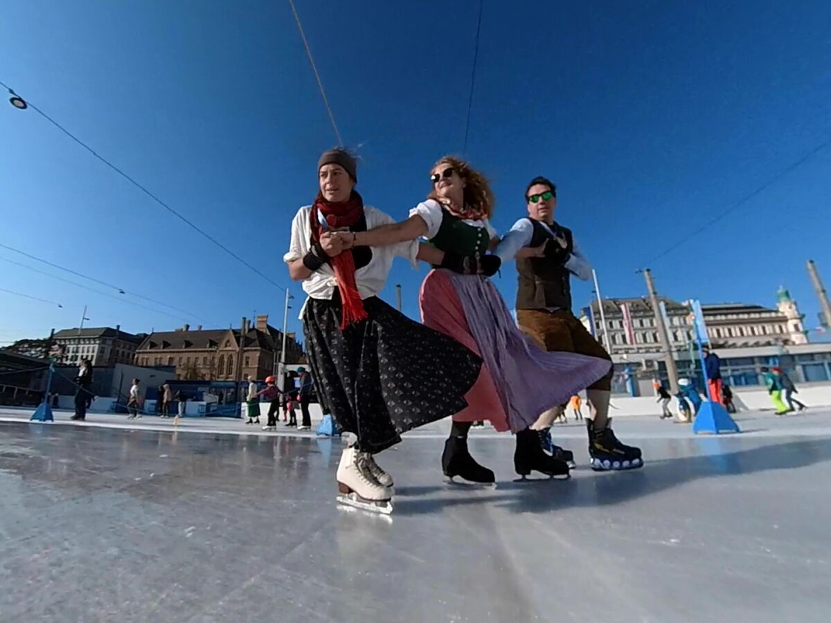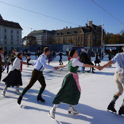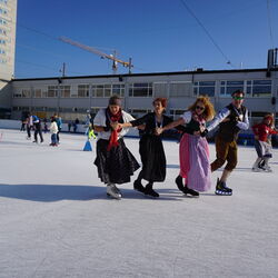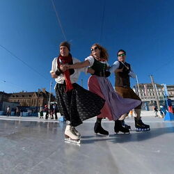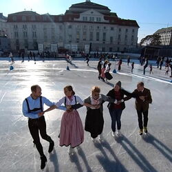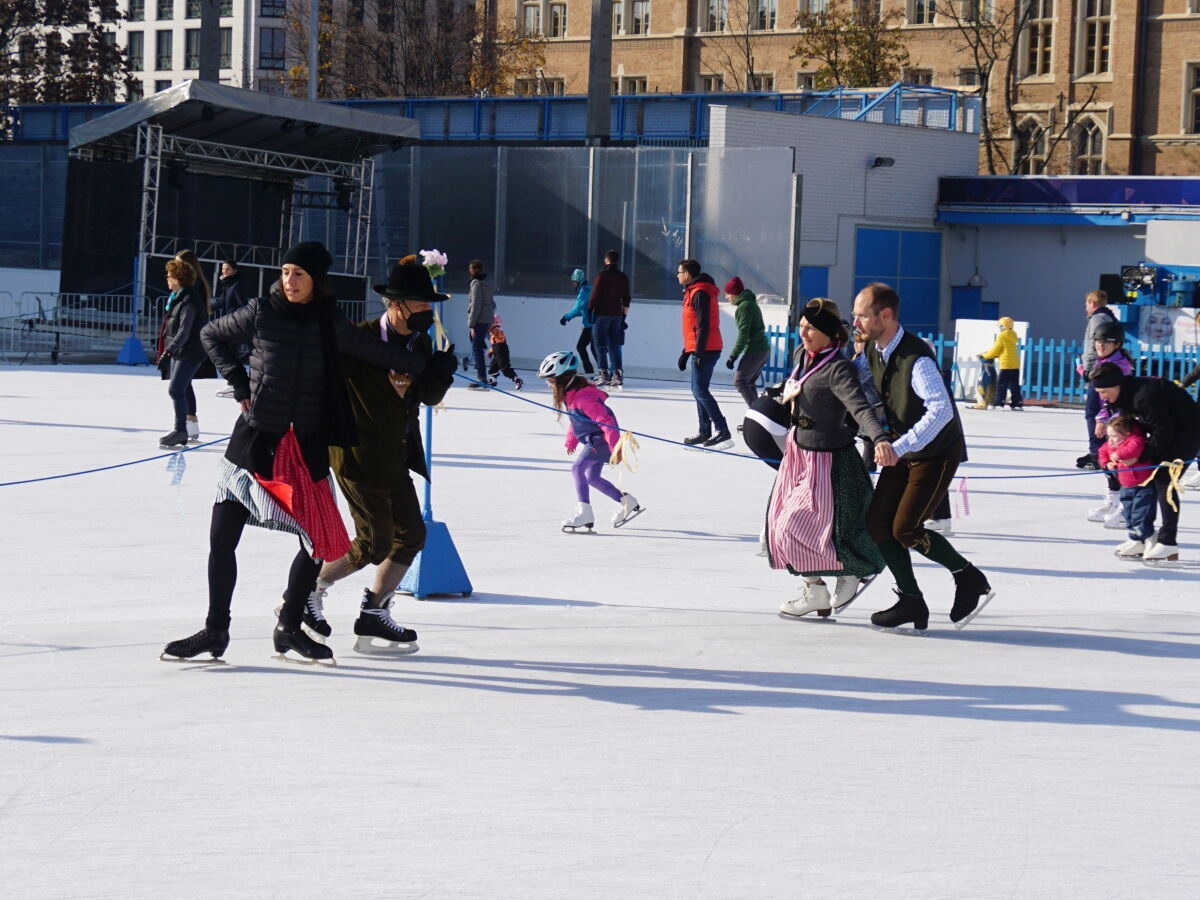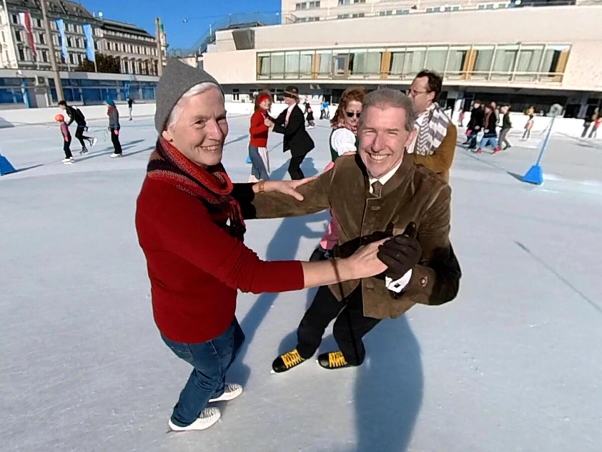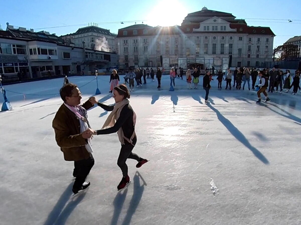 Wir danken dem Wiener Eislauf-Verein für die Organisation der Musikkapelle - ganz besonders Christoff. Der Wunsch mit einer Blasmusik wie vor 100 Jahren zu spielen hatten Gustav und ich schon anläßlich der Aufnahme des Rundtanzens in die Liste des Immateriellen Kulturerbes der UNESCO.
