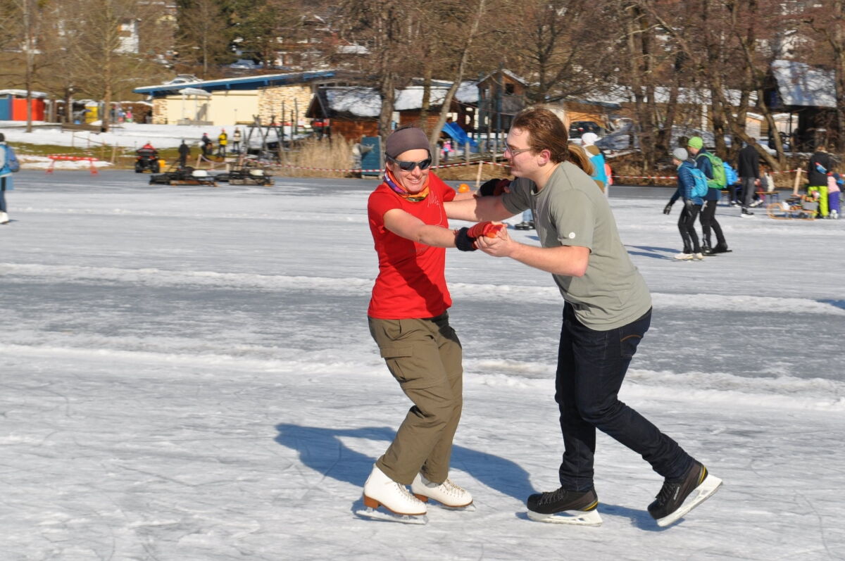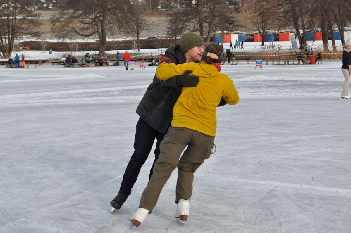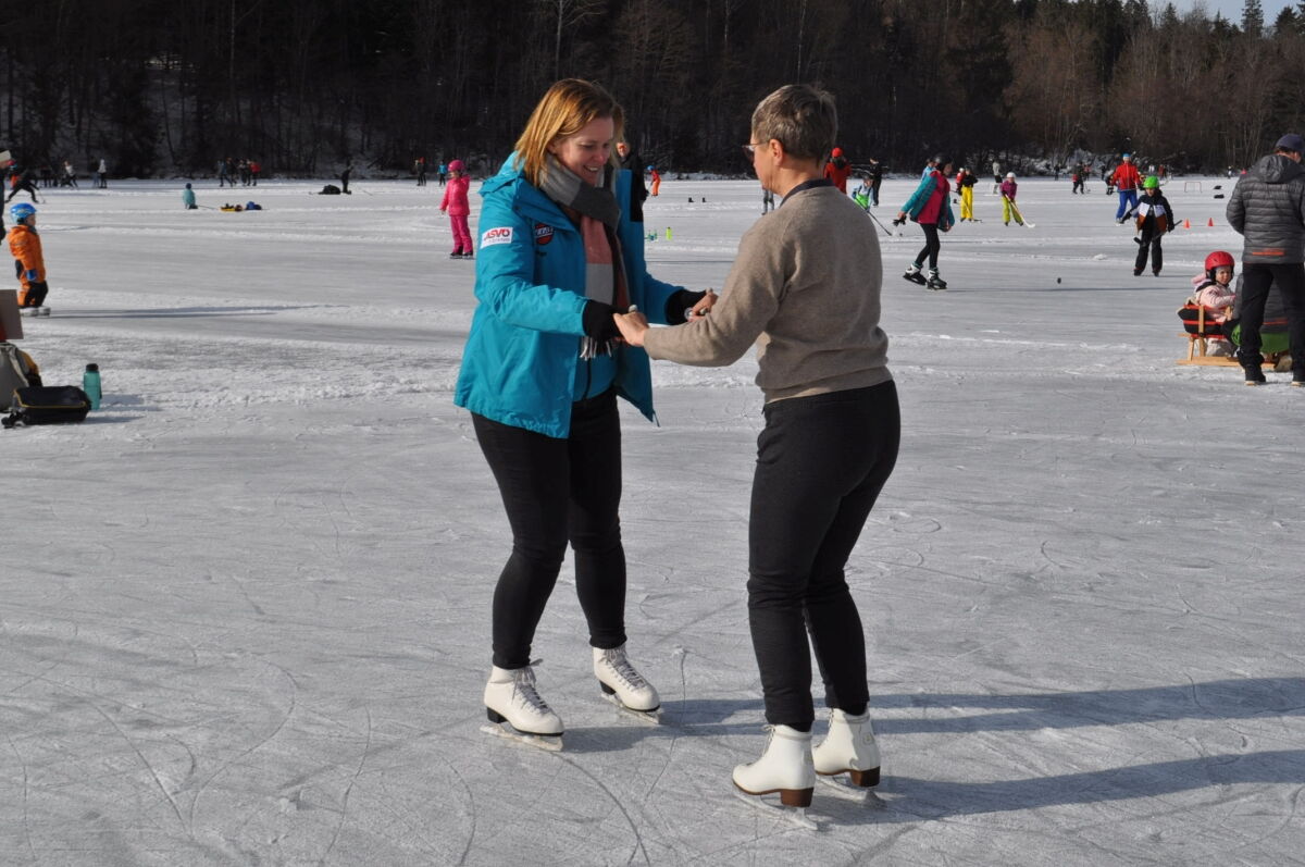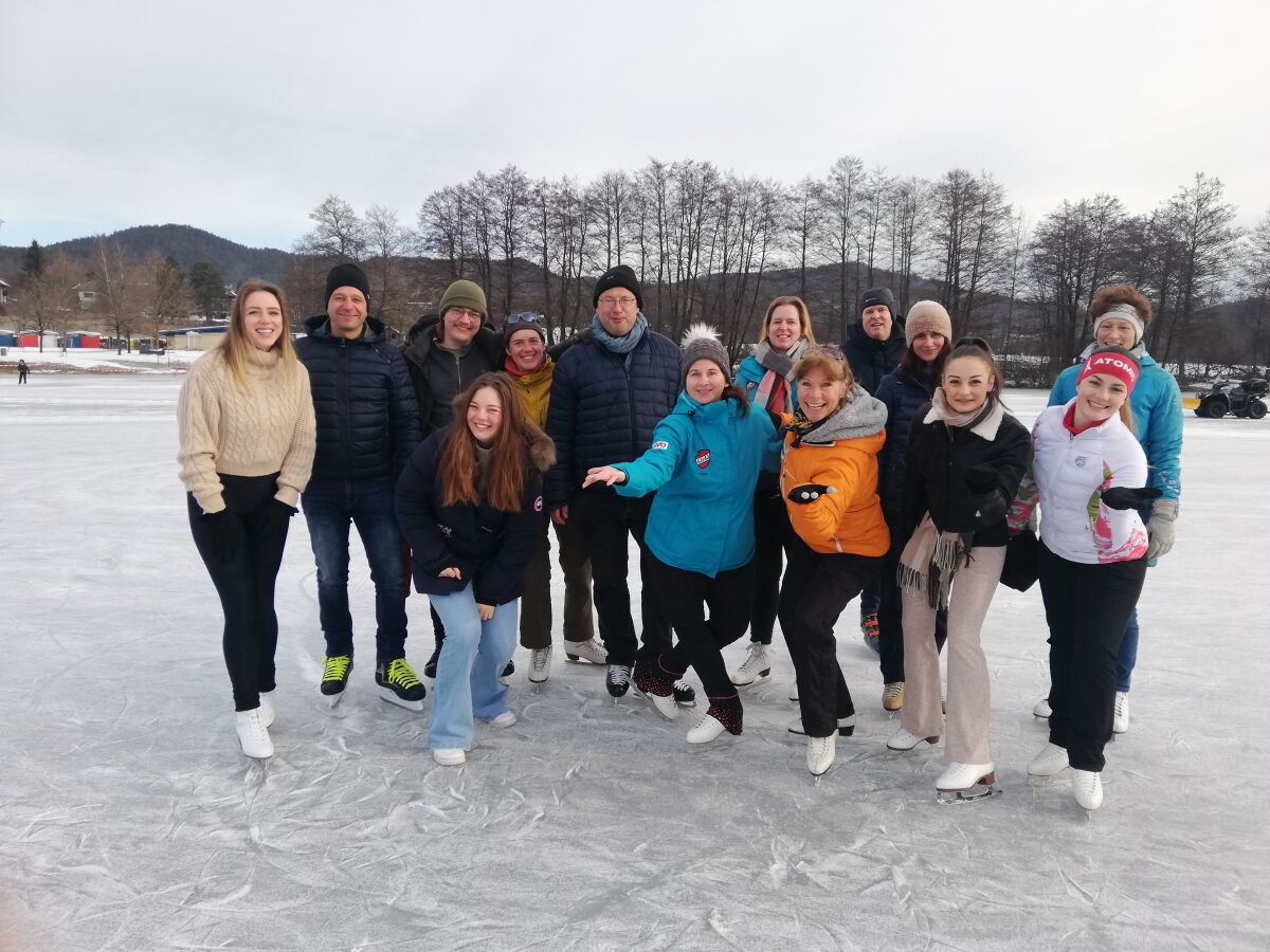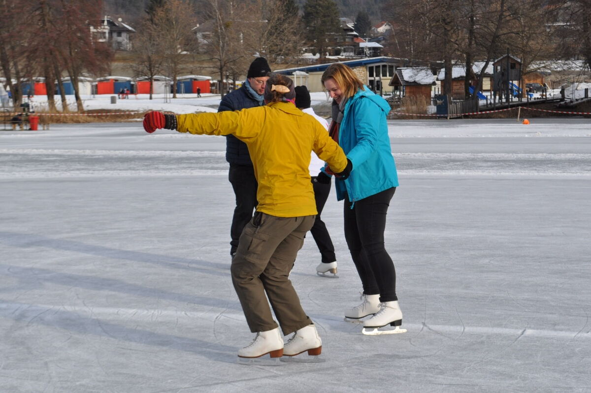 Nina Weiß hat ihre Eiskunstlaufschülerinnen mitgenommen und es haben sich viele EisläuferInnen den Walzer am Eis von uns zeigen lassen. Sogar der Obmann vom Eislaufverein Wörthersee und seine Frau haben das Tanzbein geschwungen ;-)