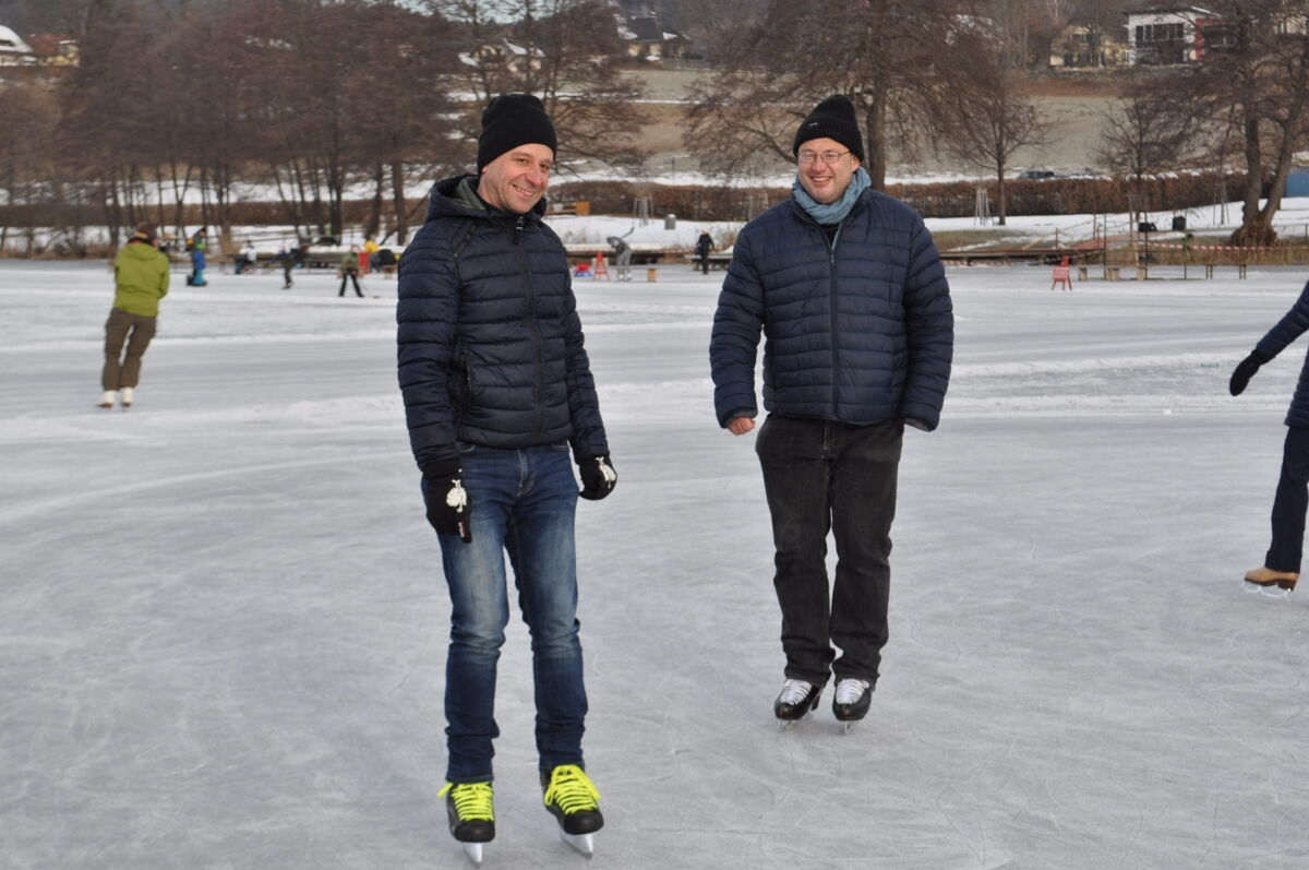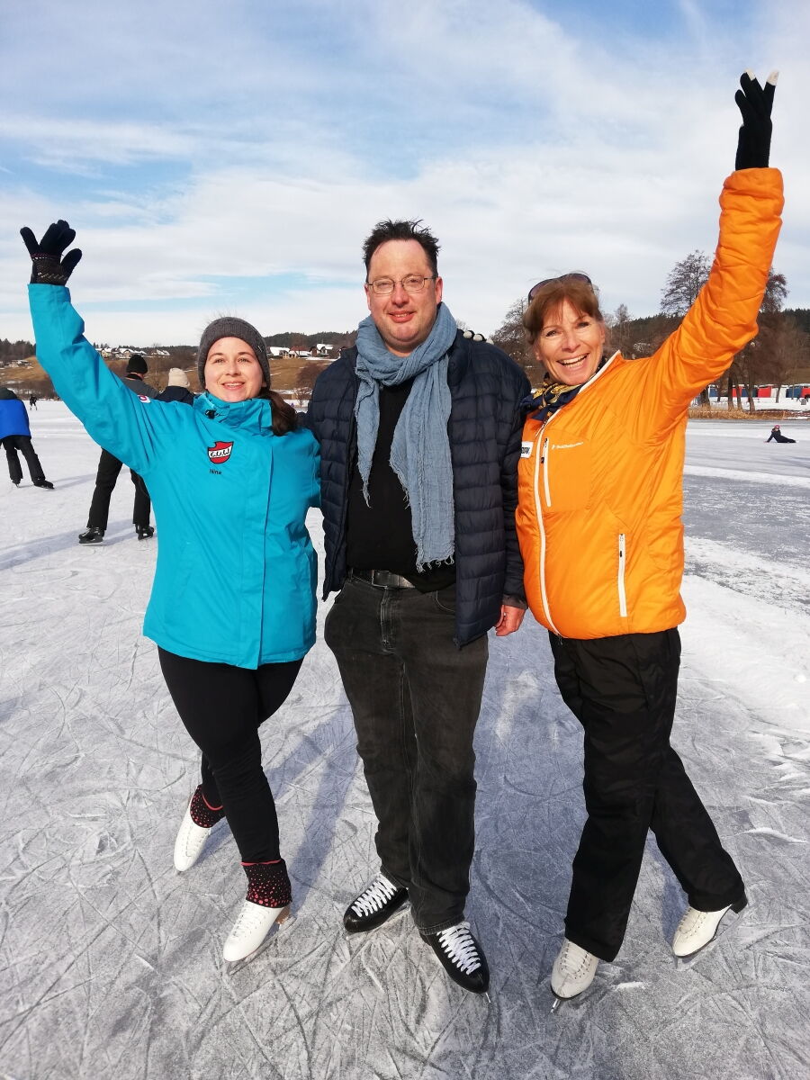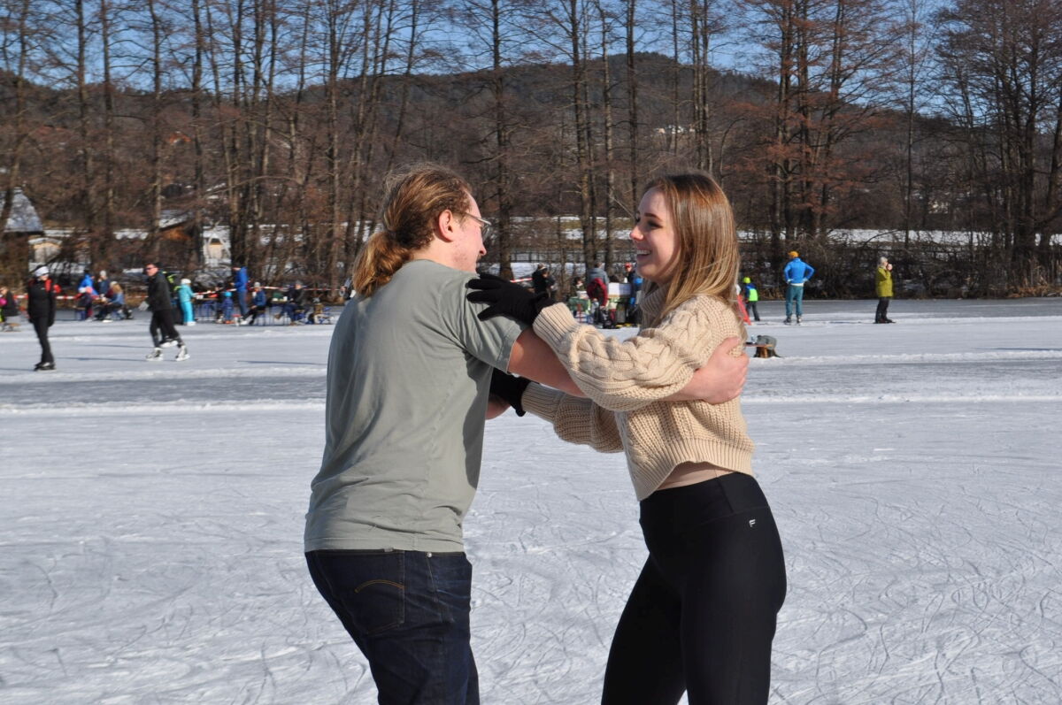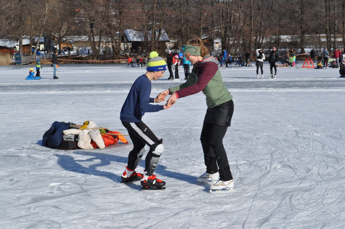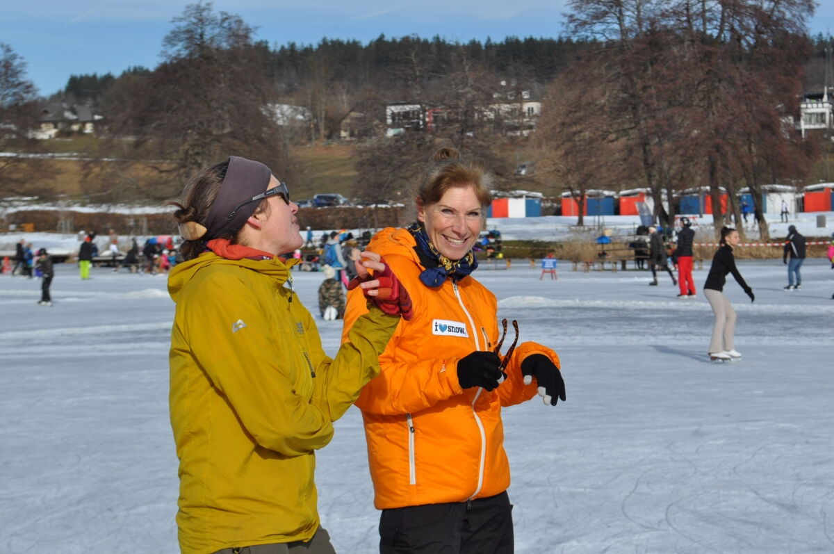Nina Weiß hat ihre Eiskunstlaufschülerinnen mitgenommen und es haben sich viele EisläuferInnen den Walzer am Eis von uns zeigen lassen. Sogar der Obmann vom Eislaufverein Wörthersee und seine Frau haben das Tanzbein geschwungen ;-)