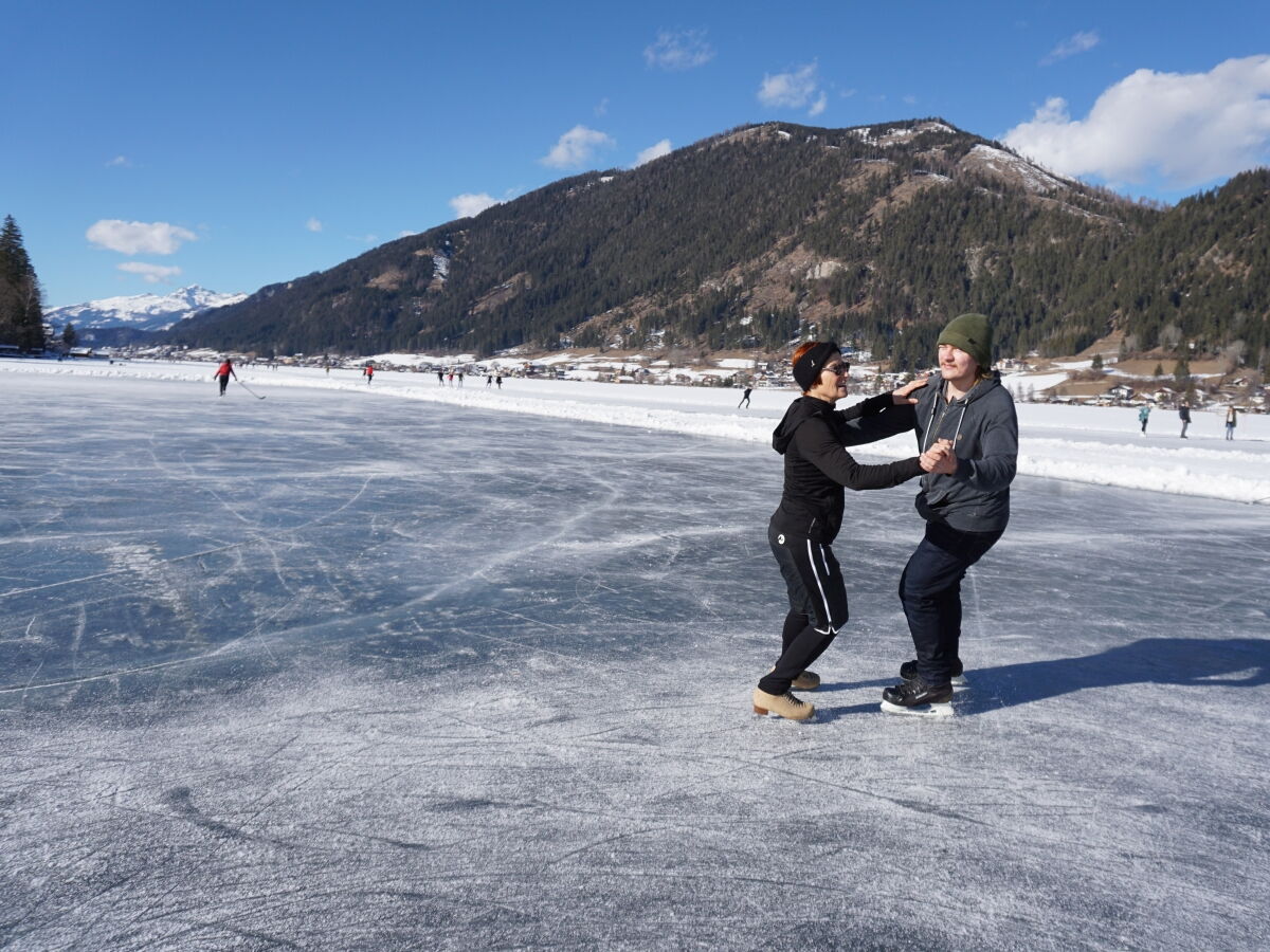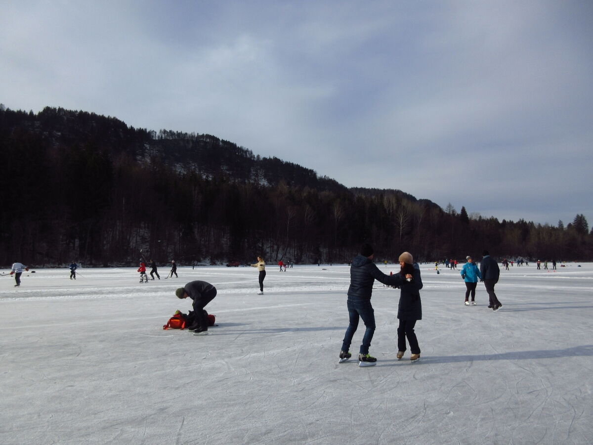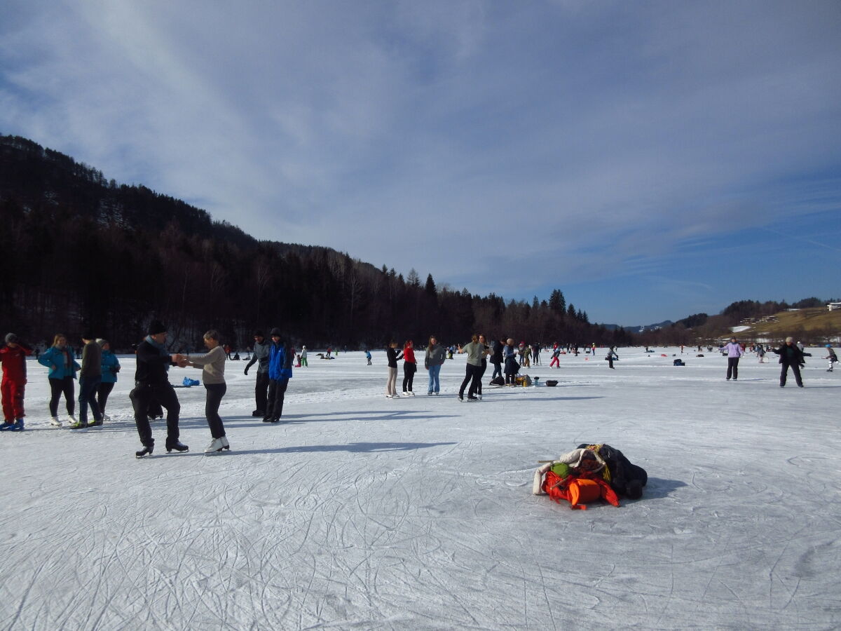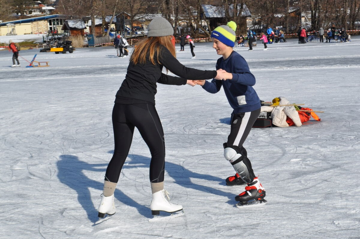 Nina Weiß hat ihre Eiskunstlaufschülerinnen mitgenommen und es haben sich viele EisläuferInnen den Walzer am Eis von uns zeigen lassen. Sogar der Obmann vom Eislaufverein Wörthersee und seine Frau haben das Tanzbein geschwungen ;-)