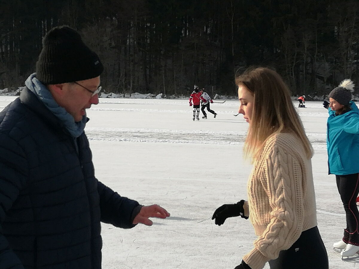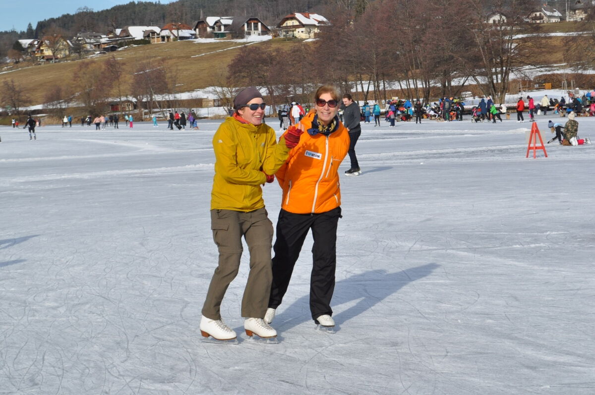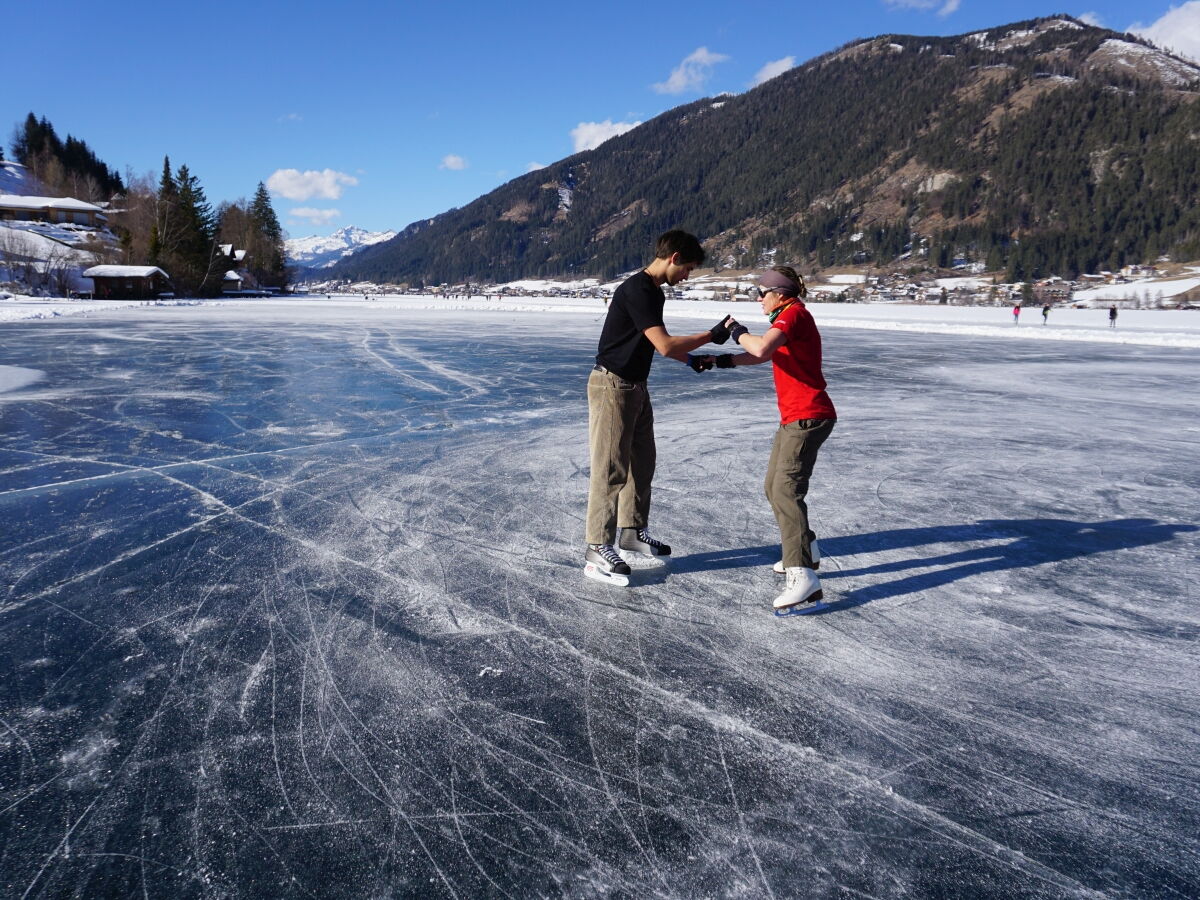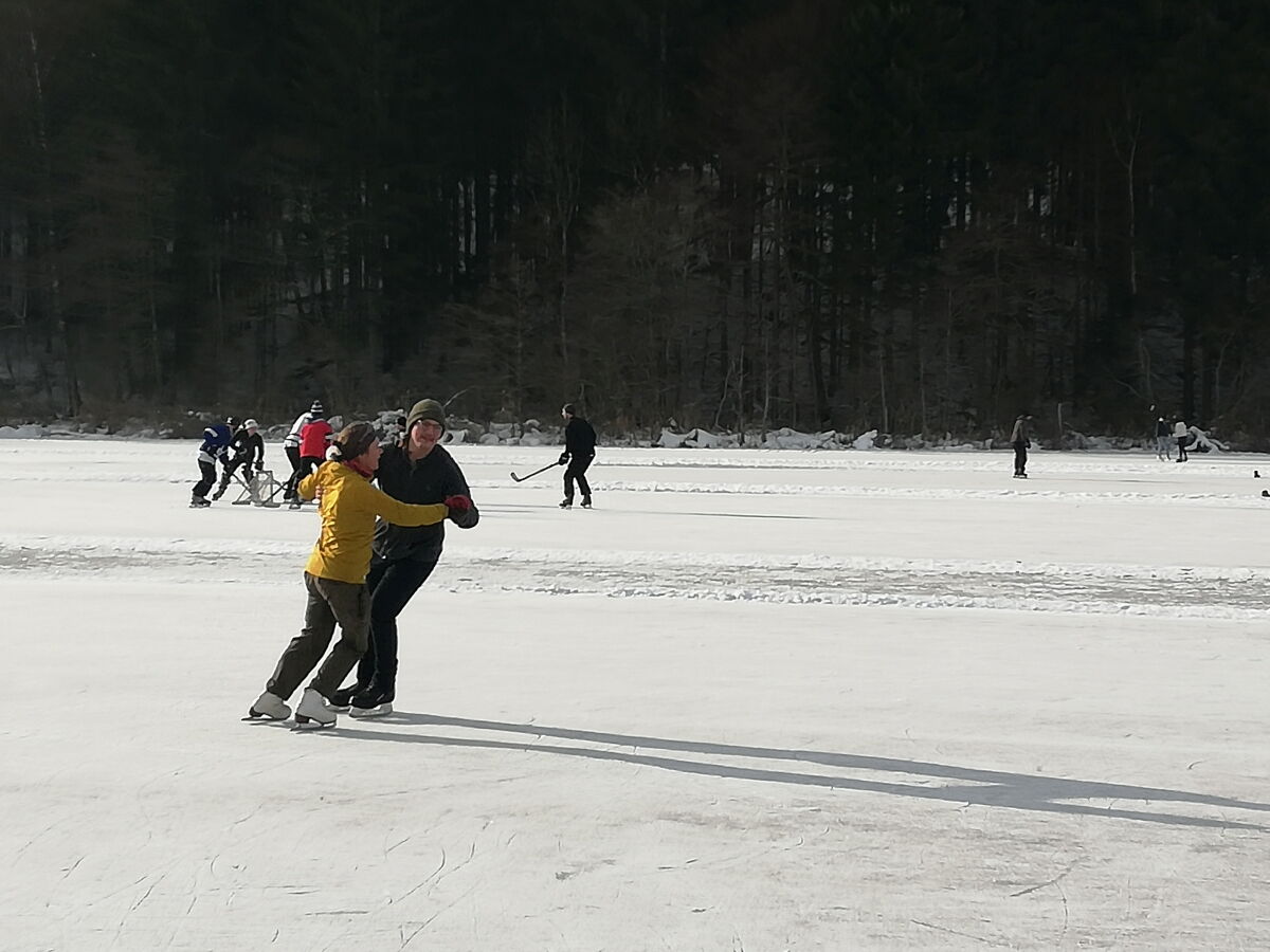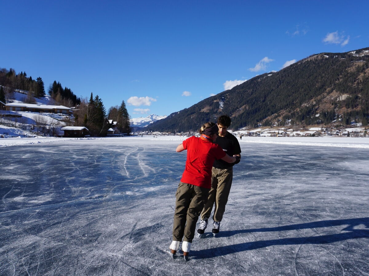 Nina Weiß hat ihre Eiskunstlaufschülerinnen mitgenommen und es haben sich viele EisläuferInnen den Walzer am Eis von uns zeigen lassen. Sogar der Obmann vom Eislaufverein Wörthersee und seine Frau haben das Tanzbein geschwungen ;-)