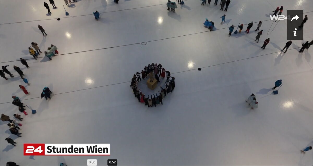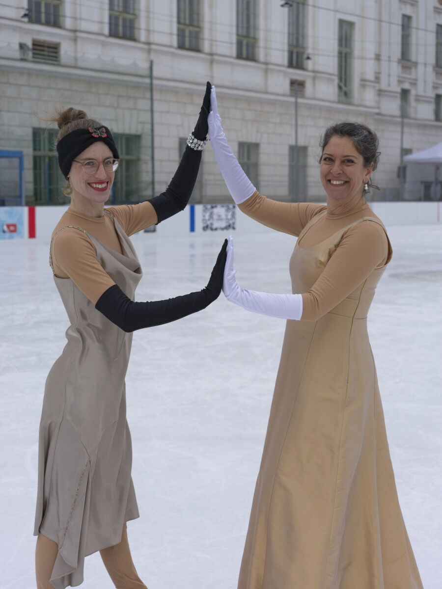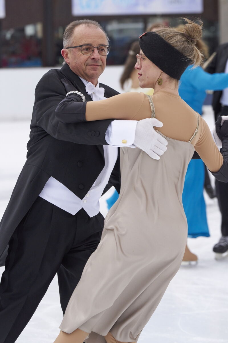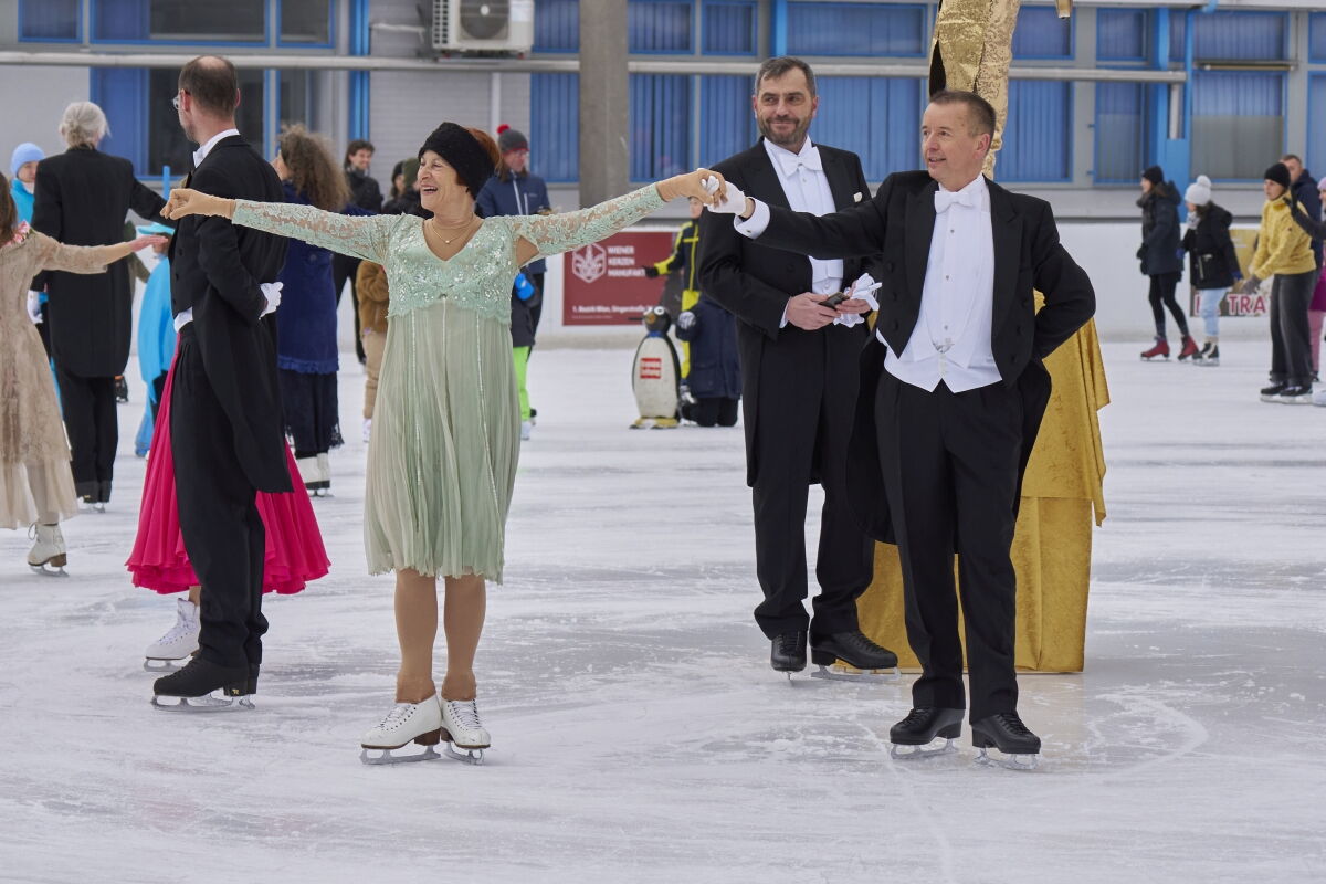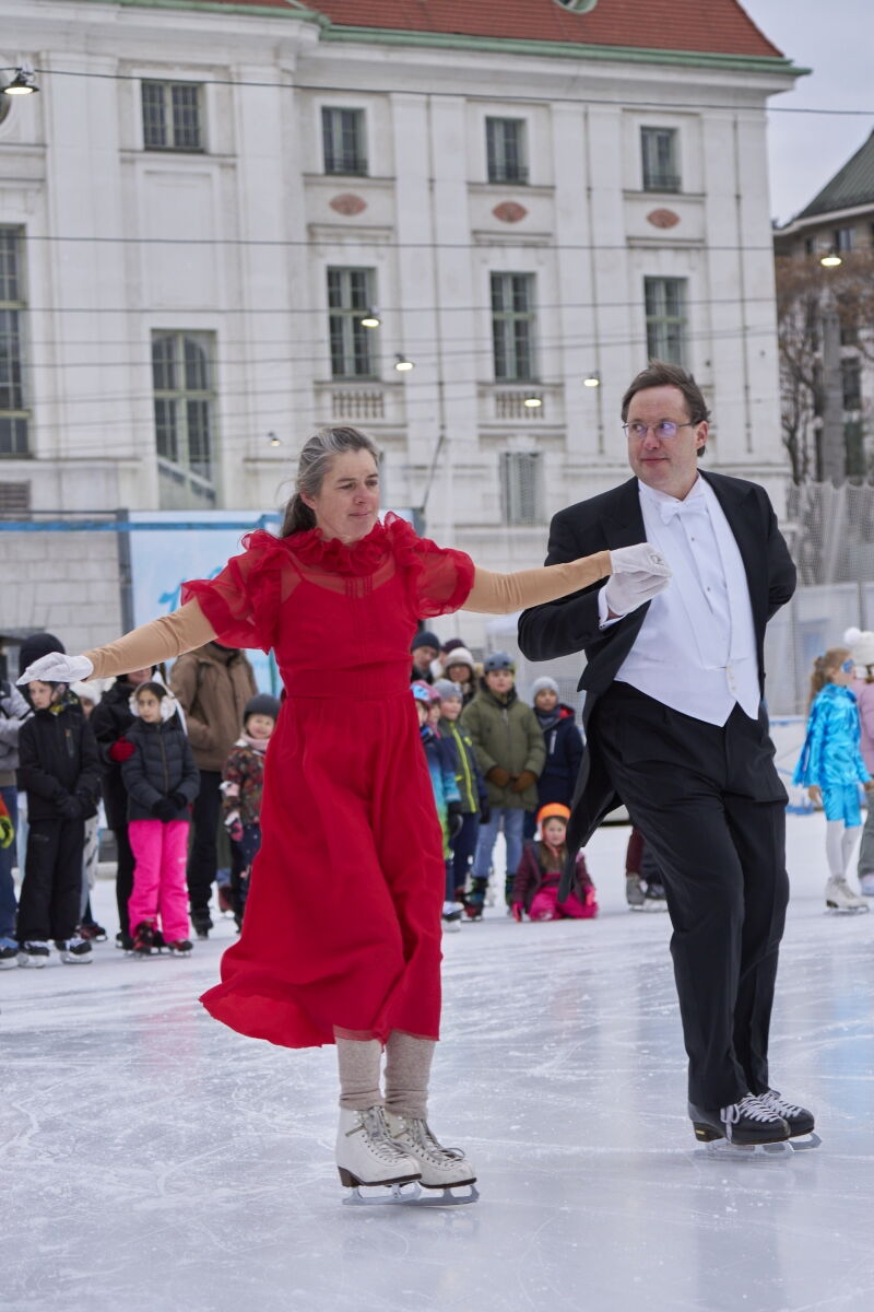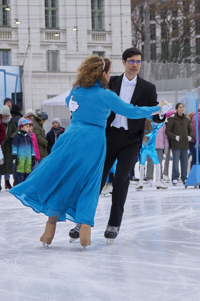 Danke an Elke Voglmayr von der Johann Strauss 2025 Wien Gesellschaft, die sich gleich interessiert für das Rundtanzen am Eis zeigte. Ein großer Dank gebührt unserem Sportdirektor Christoff Beck vom Wiener Eislaufverein, welcher unseren Auftritt zu einer Gesamtperformance organsierte. Neben dem Auftritt unserer RundtänzerInnen gab es auch die jungen EiskunstläuferInnen, welche schöne Figuren und Pirouetten zeigten. Die Donauwellen wurden von TeilnehmerInnen des Kinderkurses elegant am Eis dargestellt.
