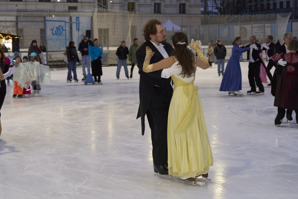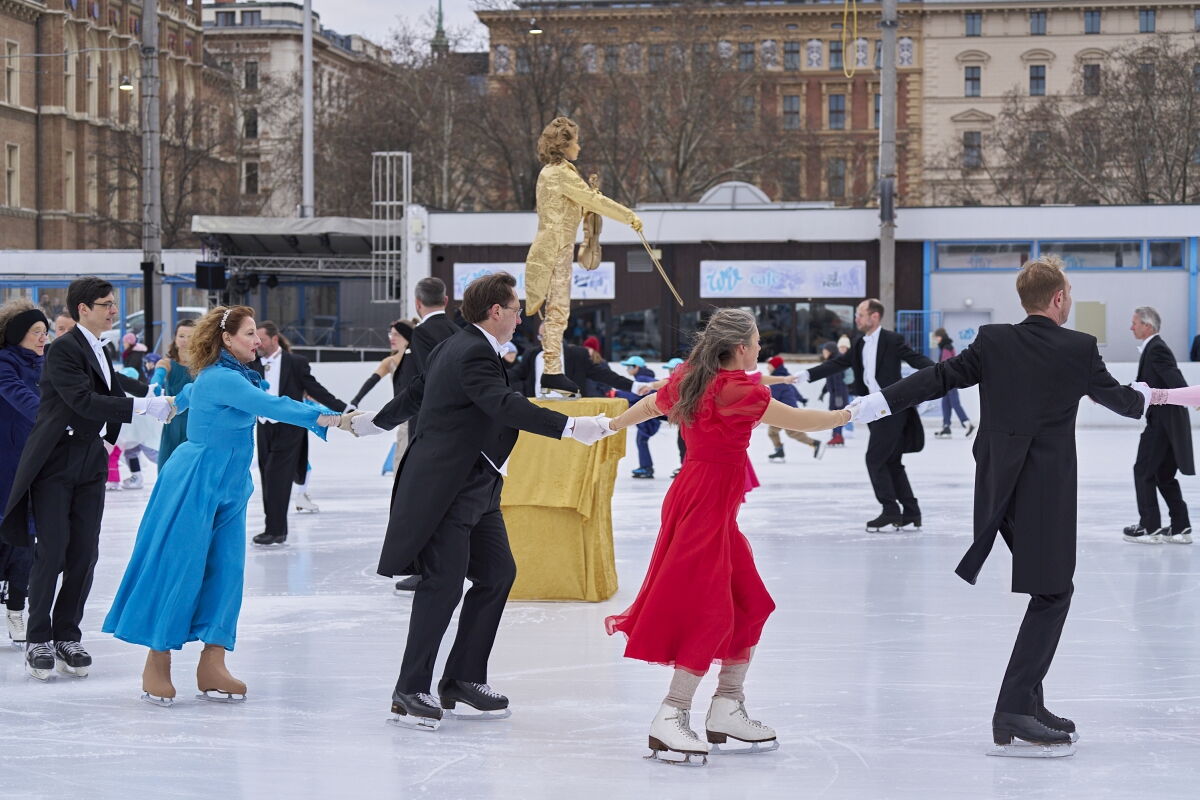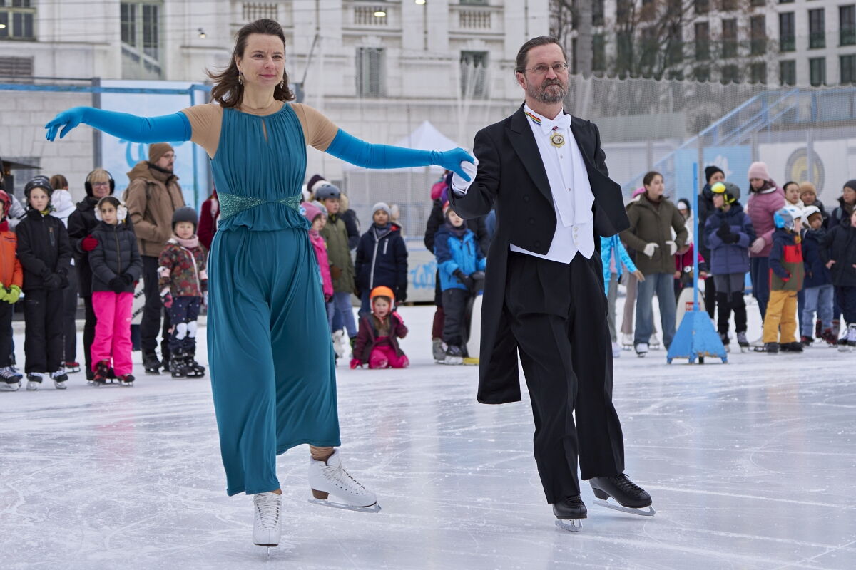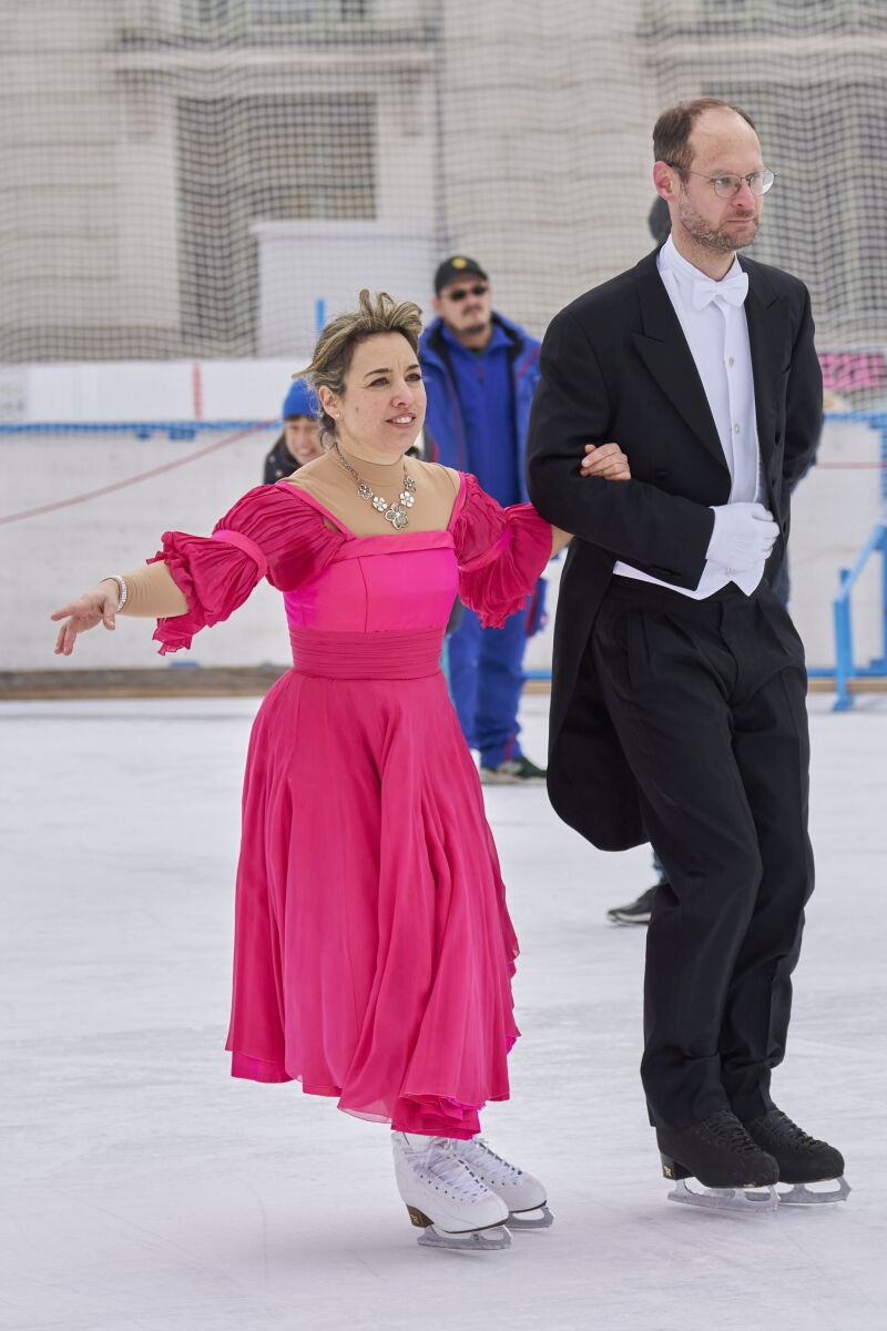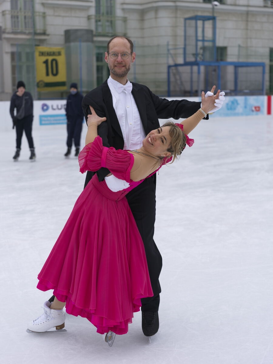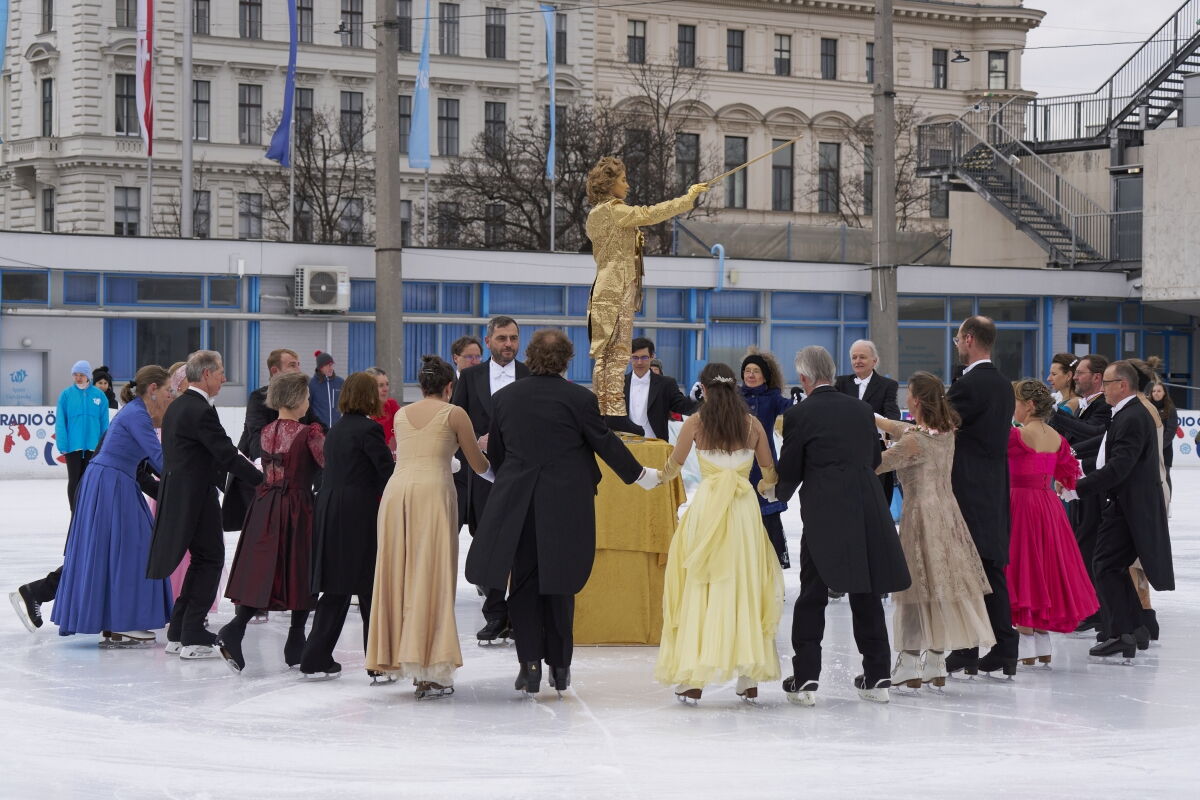 Danke an Elke Voglmayr von der Johann Strauss 2025 Wien Gesellschaft, die sich gleich interessiert für das Rundtanzen am Eis zeigte. Ein großer Dank gebührt unserem Sportdirektor Christoff Beck vom Wiener Eislaufverein, welcher unseren Auftritt zu einer Gesamtperformance organsierte. Neben dem Auftritt unserer RundtänzerInnen gab es auch die jungen EiskunstläuferInnen, welche schöne Figuren und Pirouetten zeigten. Die Donauwellen wurden von TeilnehmerInnen des Kinderkurses elegant am Eis dargestellt.