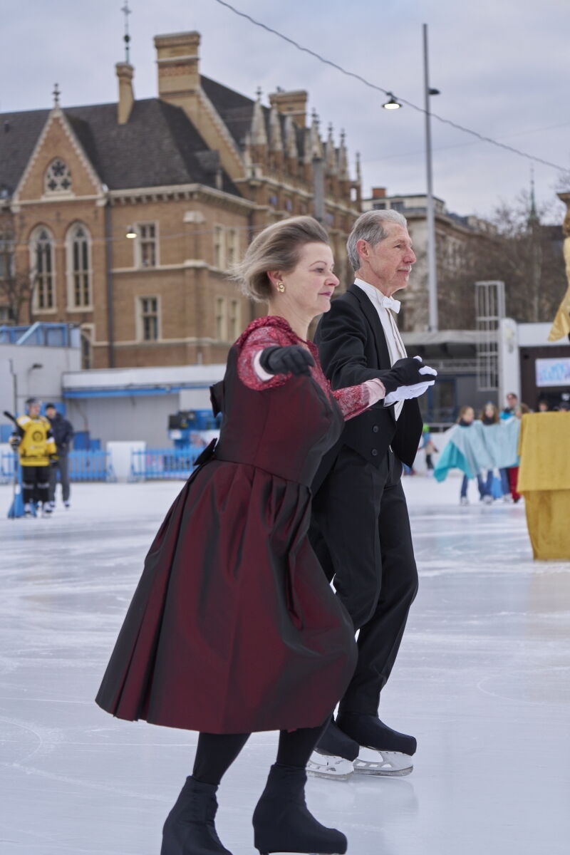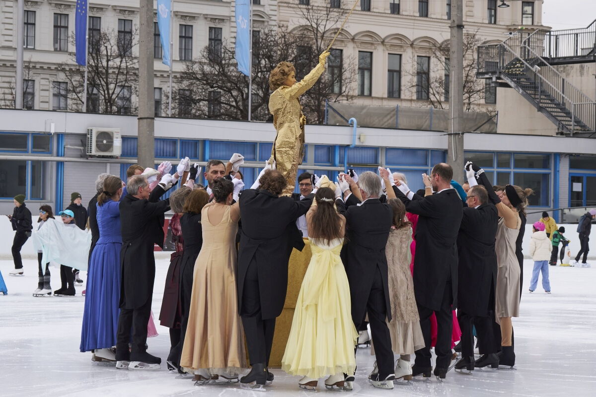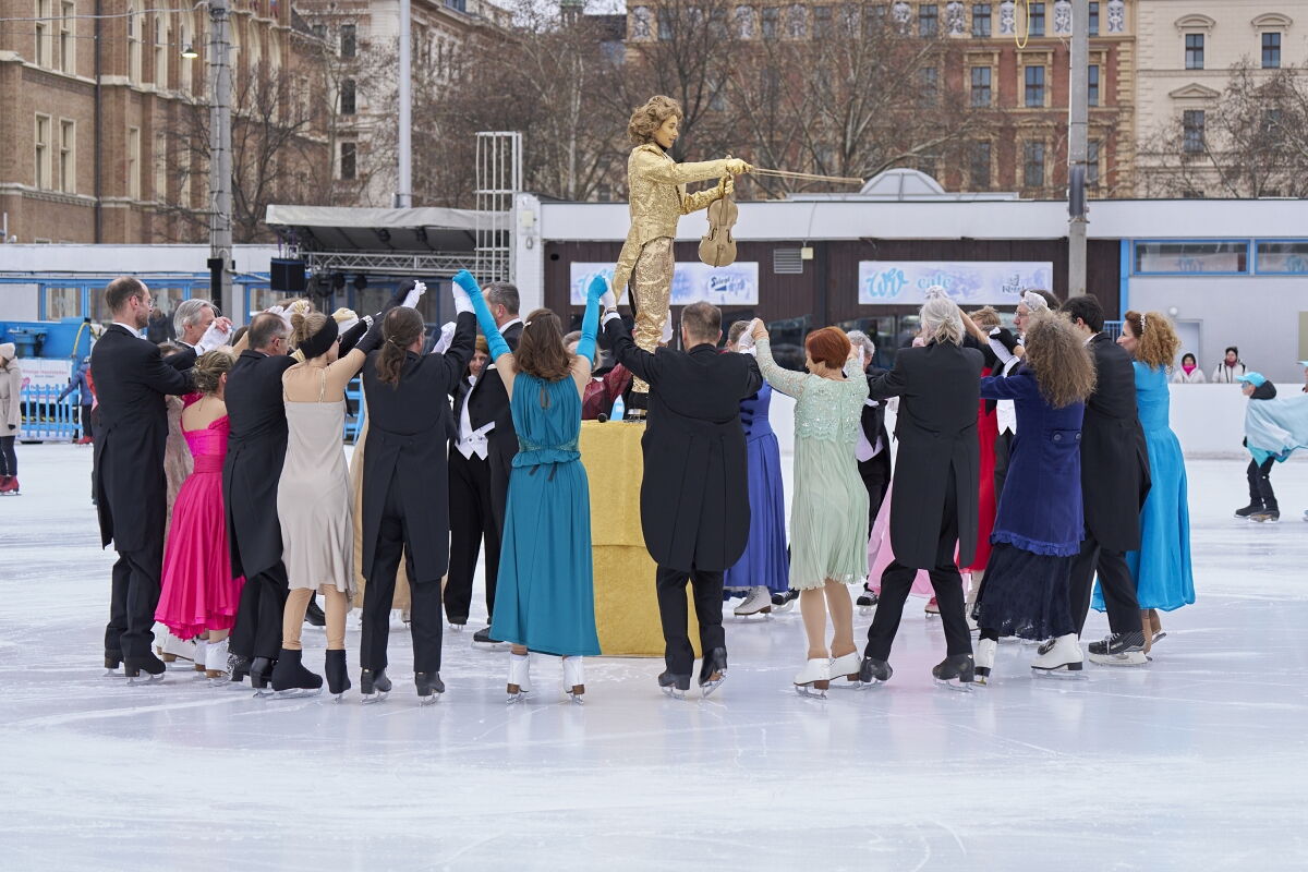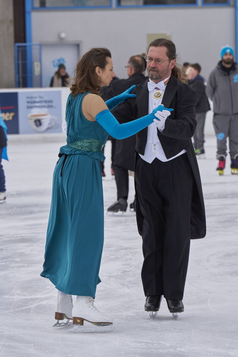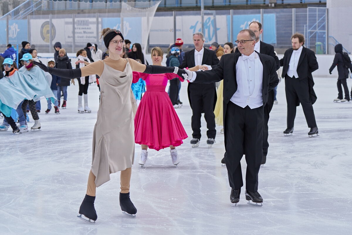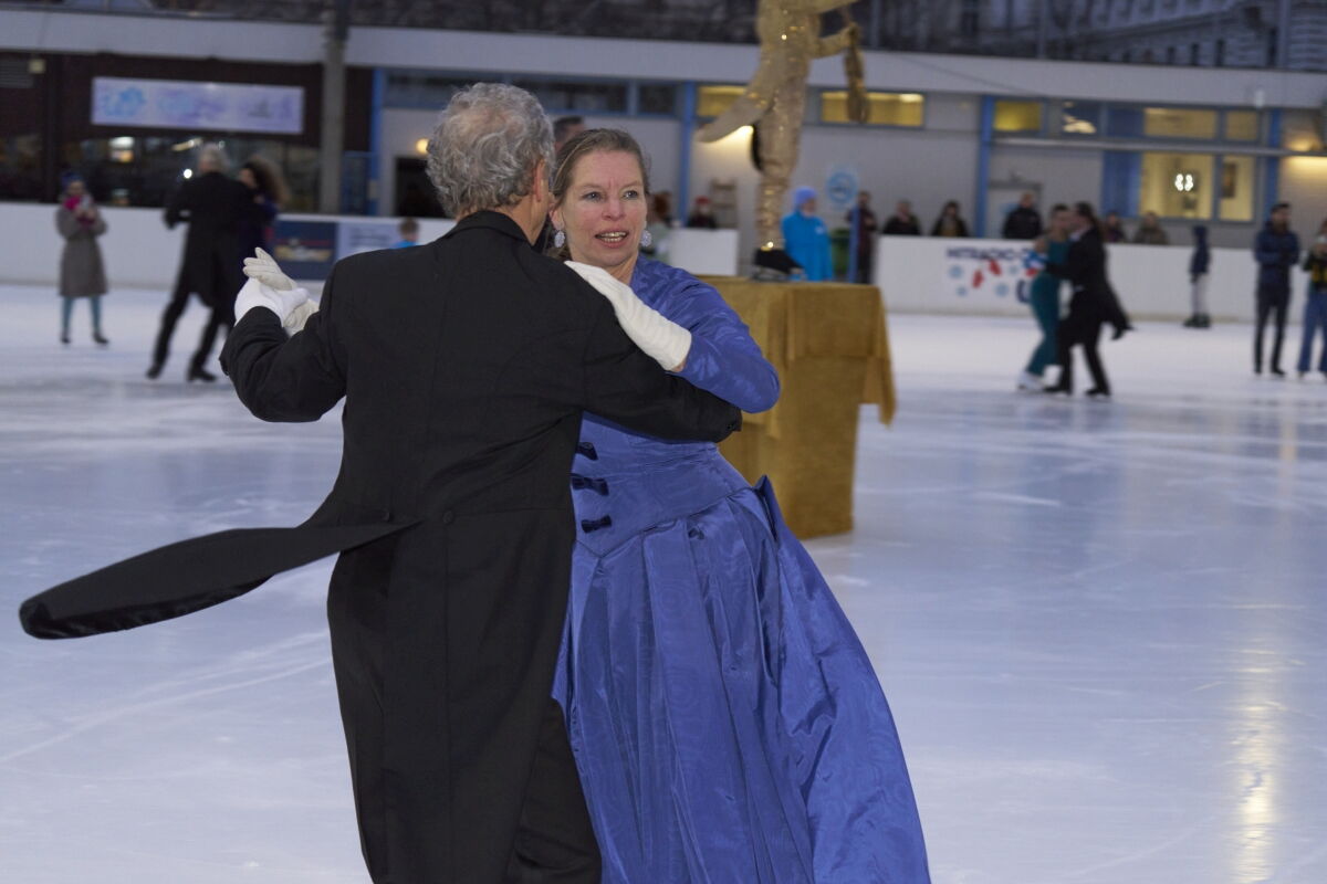 Danke an Elke Voglmayr von der Johann Strauss 2025 Wien Gesellschaft, die sich gleich interessiert für das Rundtanzen am Eis zeigte. Ein großer Dank gebührt unserem Sportdirektor Christoff Beck vom Wiener Eislaufverein, welcher unseren Auftritt zu einer Gesamtperformance organsierte. Neben dem Auftritt unserer RundtänzerInnen gab es auch die jungen EiskunstläuferInnen, welche schöne Figuren und Pirouetten zeigten. Die Donauwellen wurden von TeilnehmerInnen des Kinderkurses elegant am Eis dargestellt.